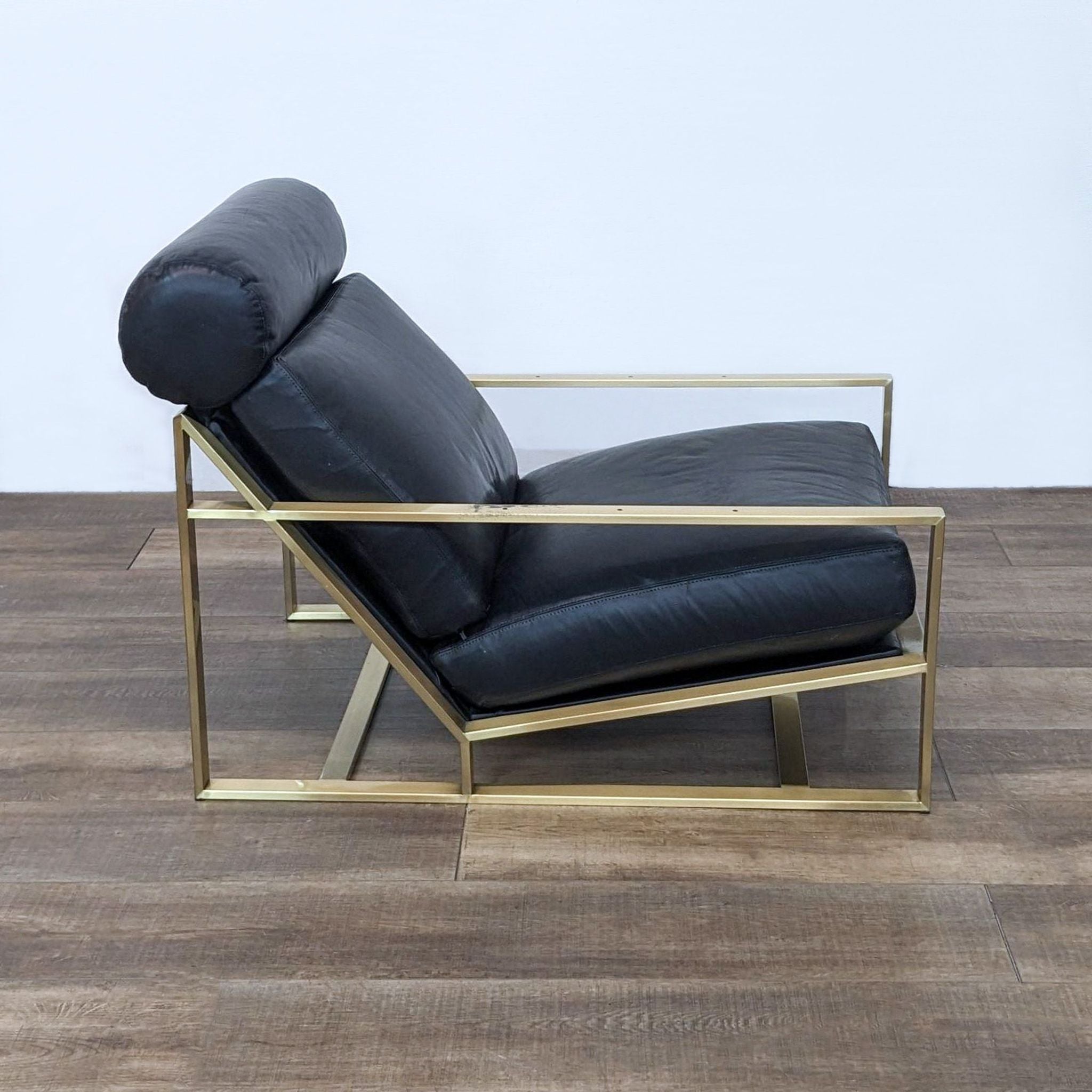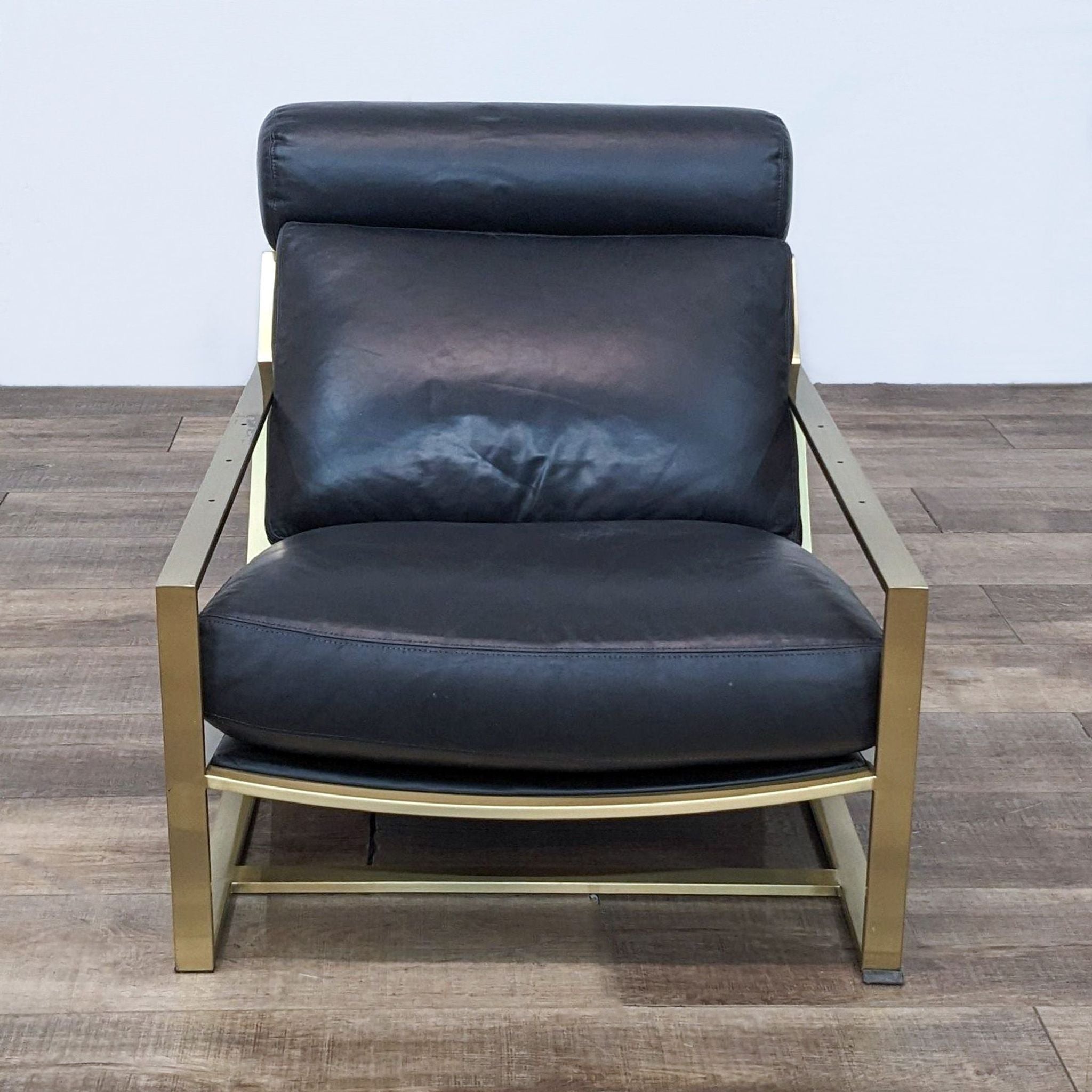 The Cruisin' lounge chair is one of Milo Baughman's iconic, midcentury modern masterpieces. This trendsetting lounge chair features a brushed bronze steel frame, padded arms (missing), a cylindrical headrest along with luxurious seating and back support upholstered in leather).