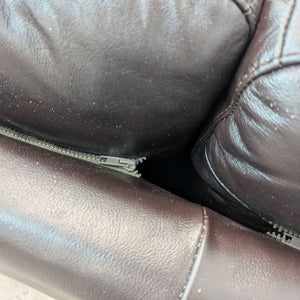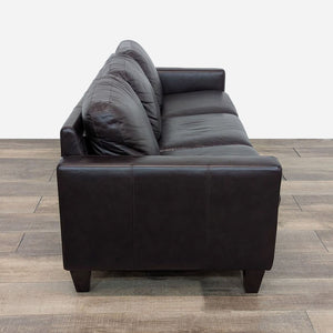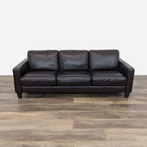 3-Seat Dark Brown Leather Sofa by Violino Ltd. has plush cushioning, track arms and tapered wood block feet.