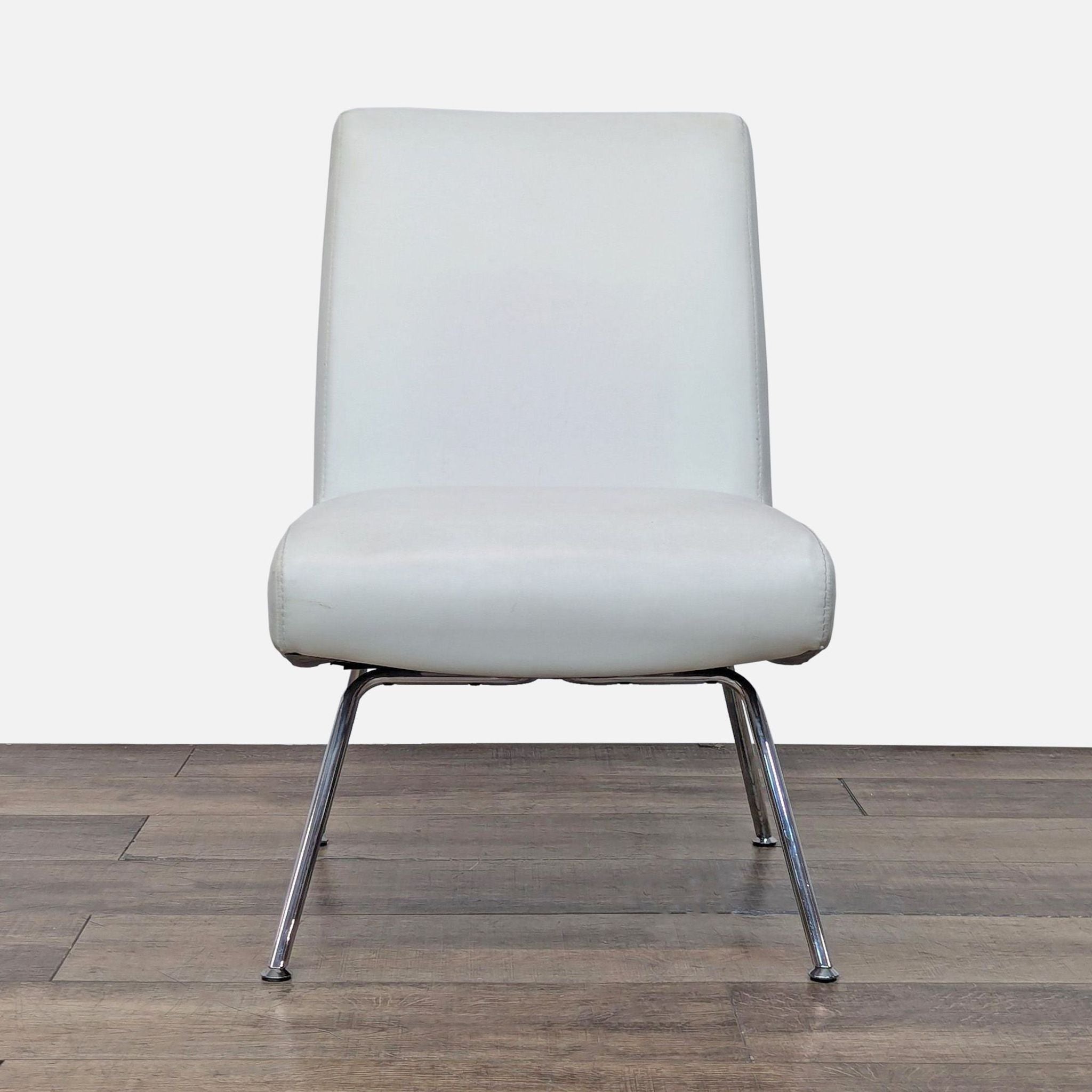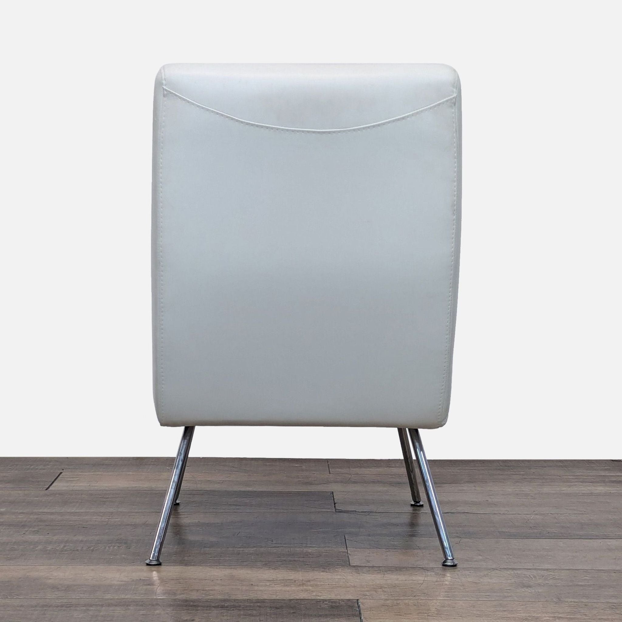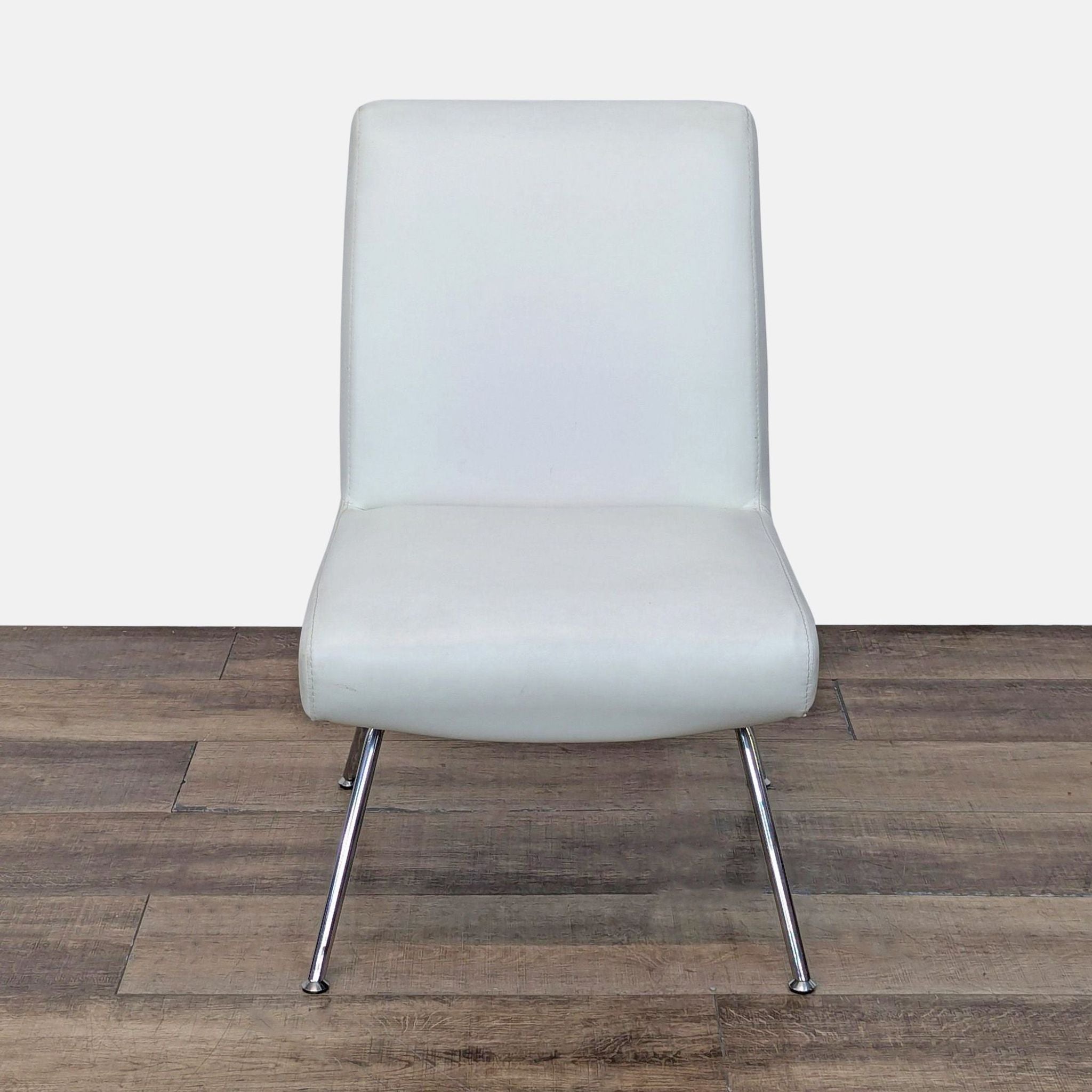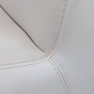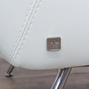 Sleek white leather upholstery with chrome metal legs.