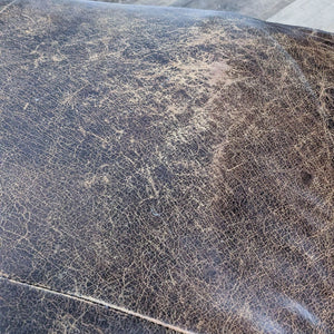 Large Rectangular Brown Distressed Leather Top Table/Ottoman On Wood Frame With Shelf And Nail Head Detailing