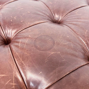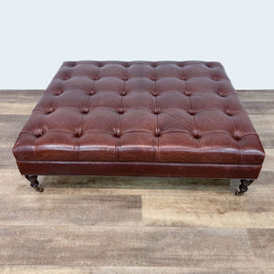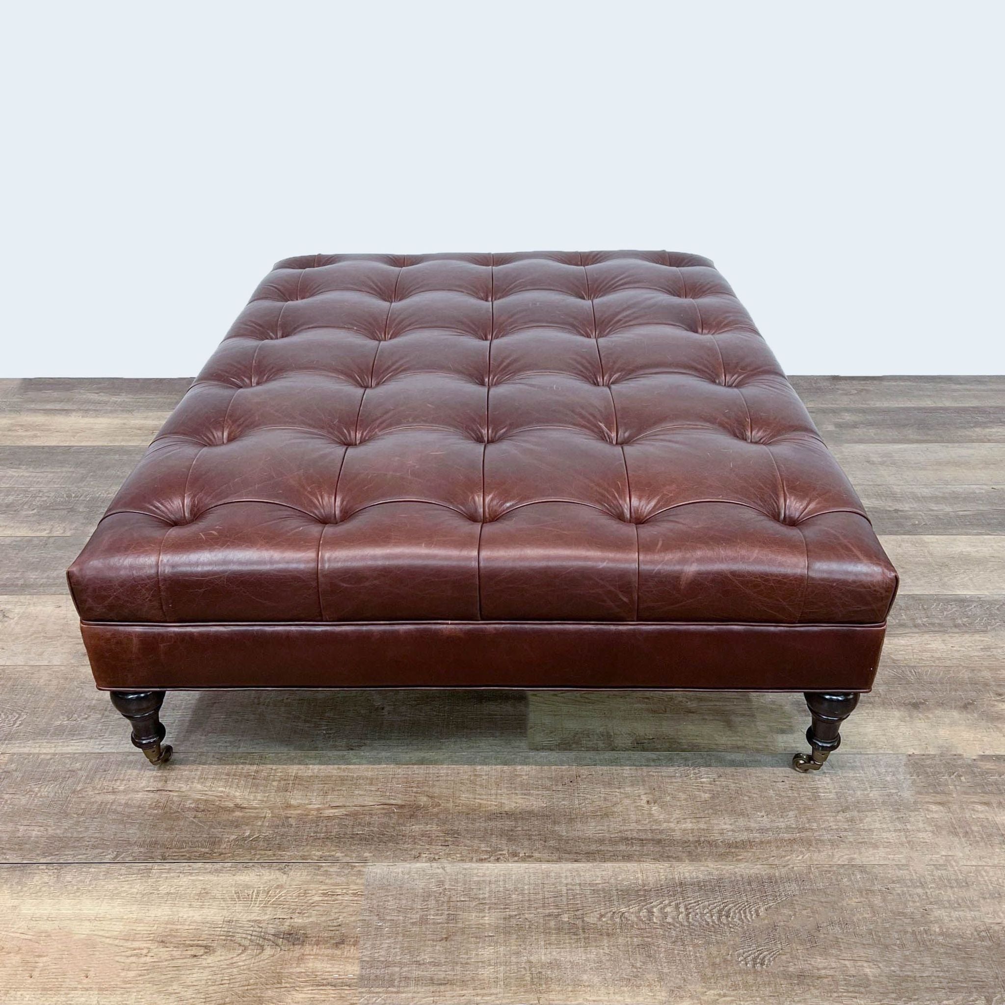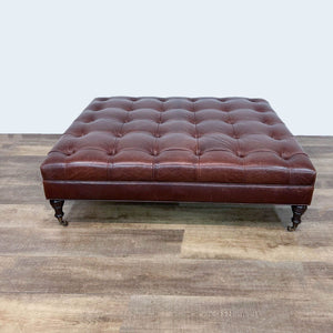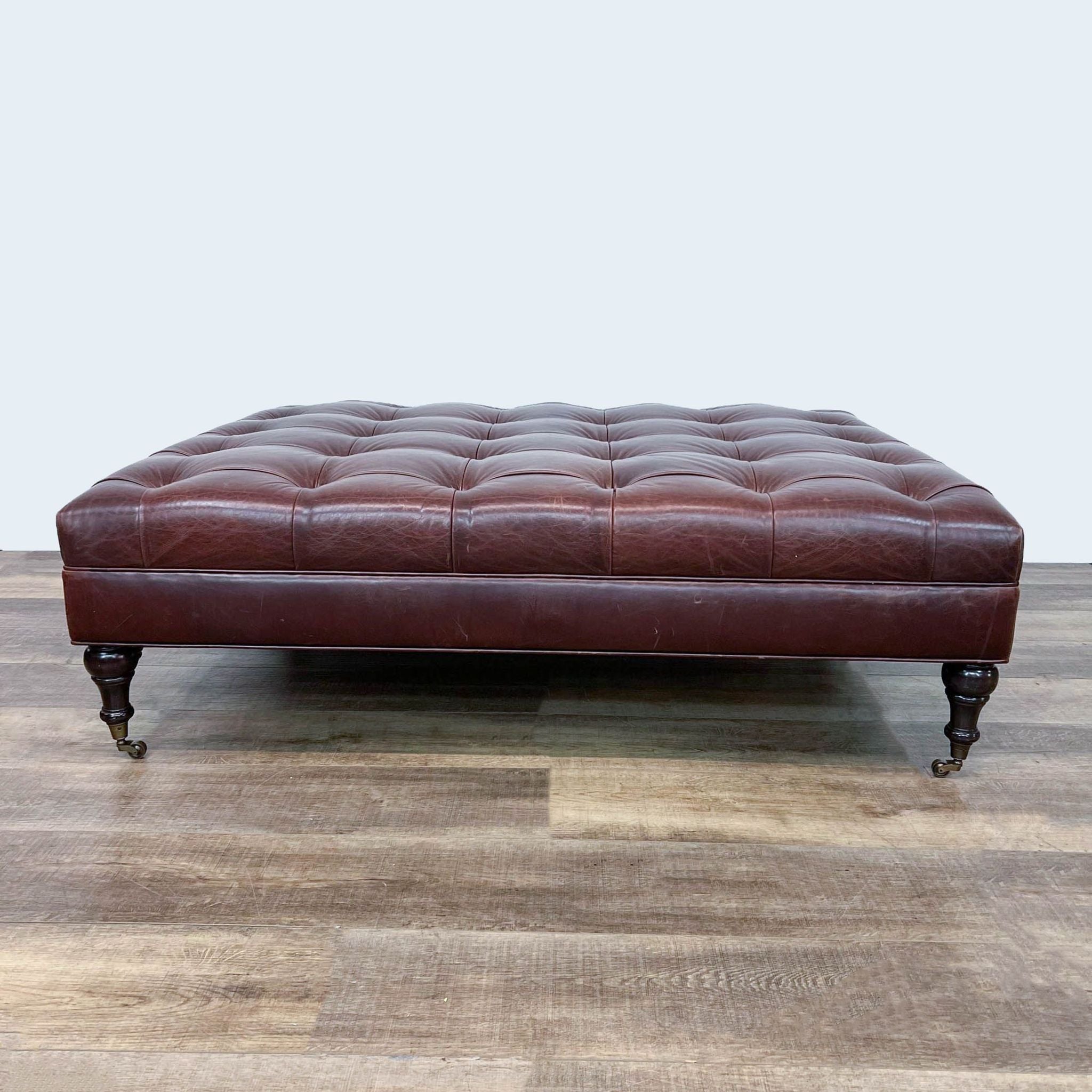Large Tufted Top Leather Ottoman Four Feet By Five Feet On Spindle Feet With Metal Casters