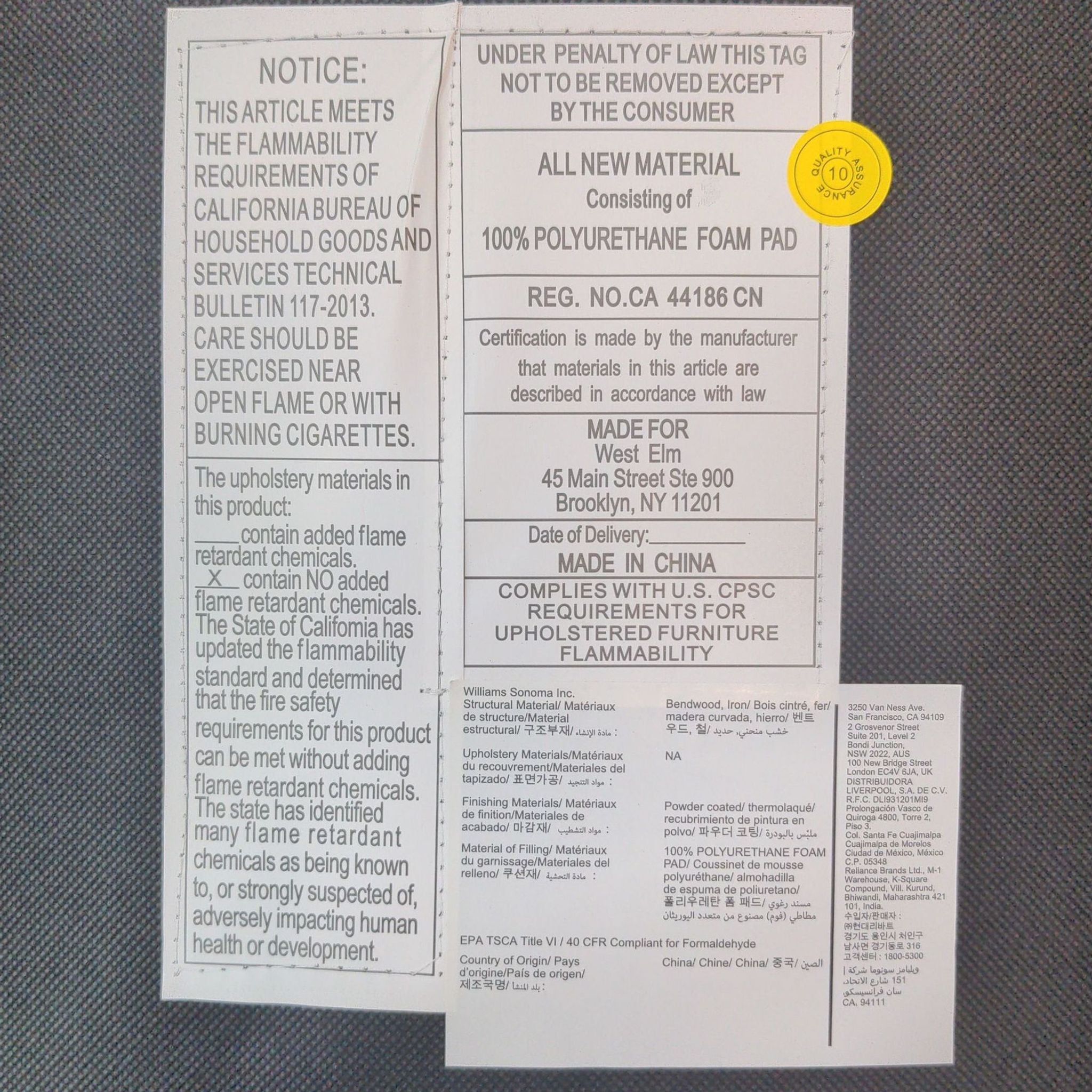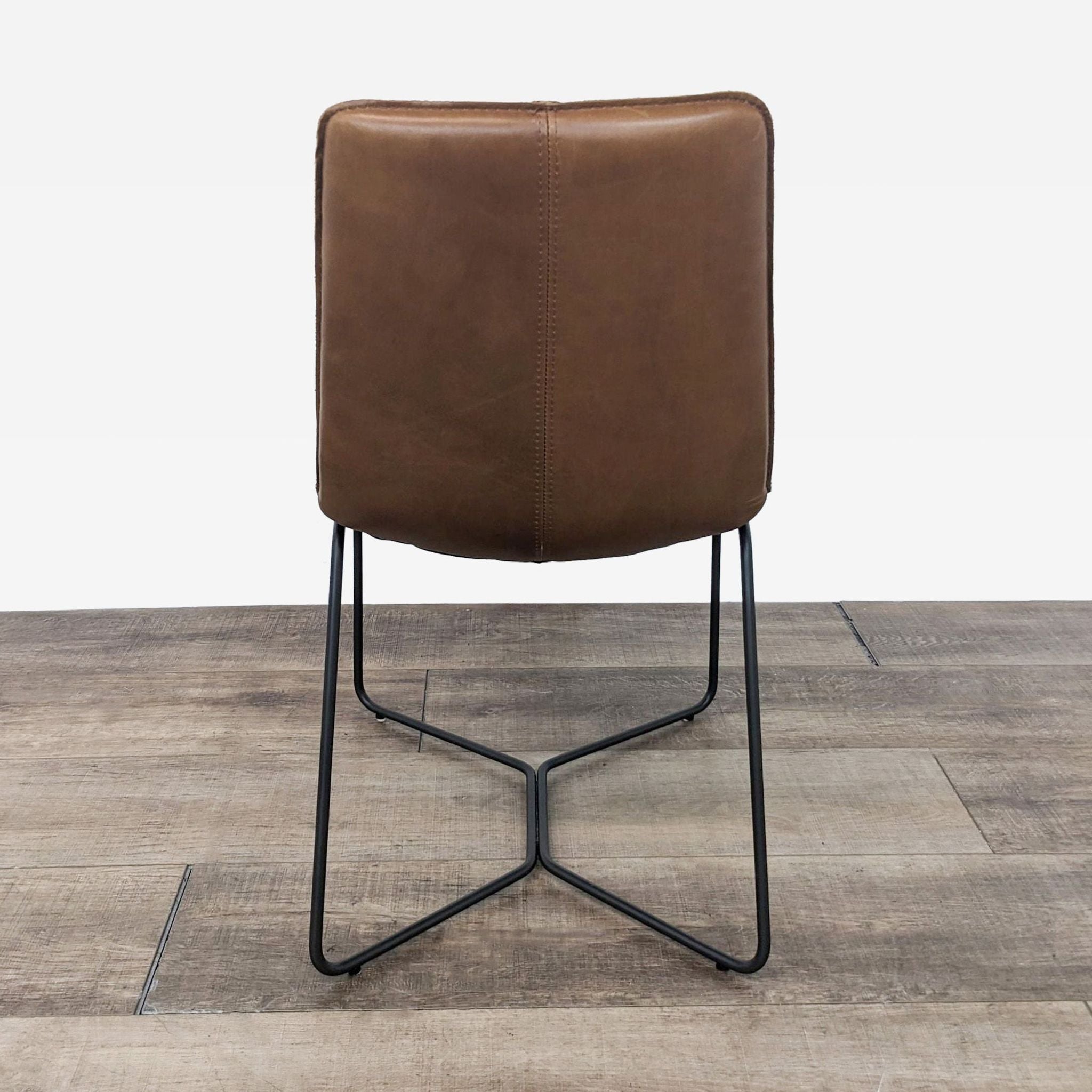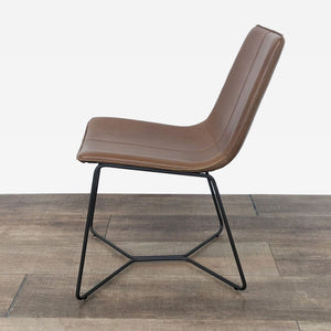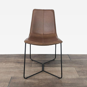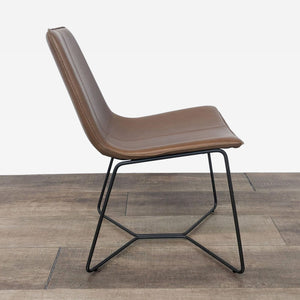 The Slope Dining Chair by West Elm features a kiln-dried bentwood seat with foam padding covered is genuine leather upholstery and powder-coated iron legs.