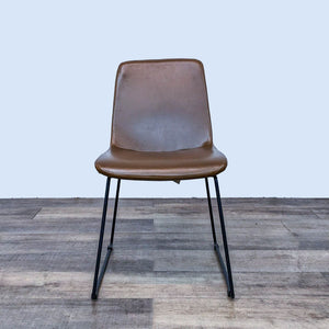 The Invite dining side chair by Modway is outfitted with a steel sled base, floor glides, and comes finely stitched in padded faux leather.