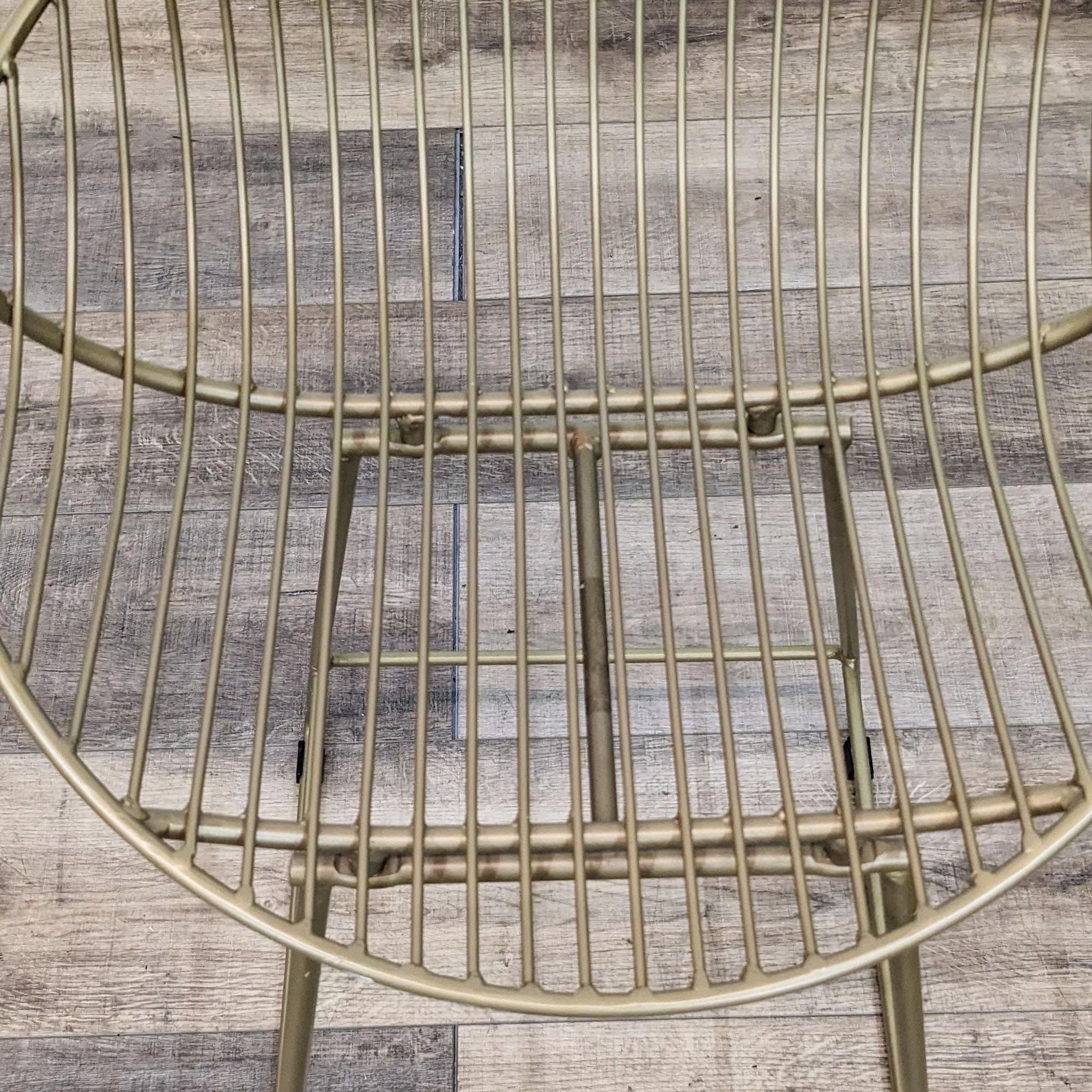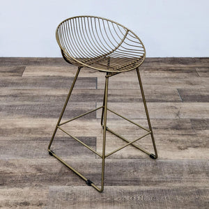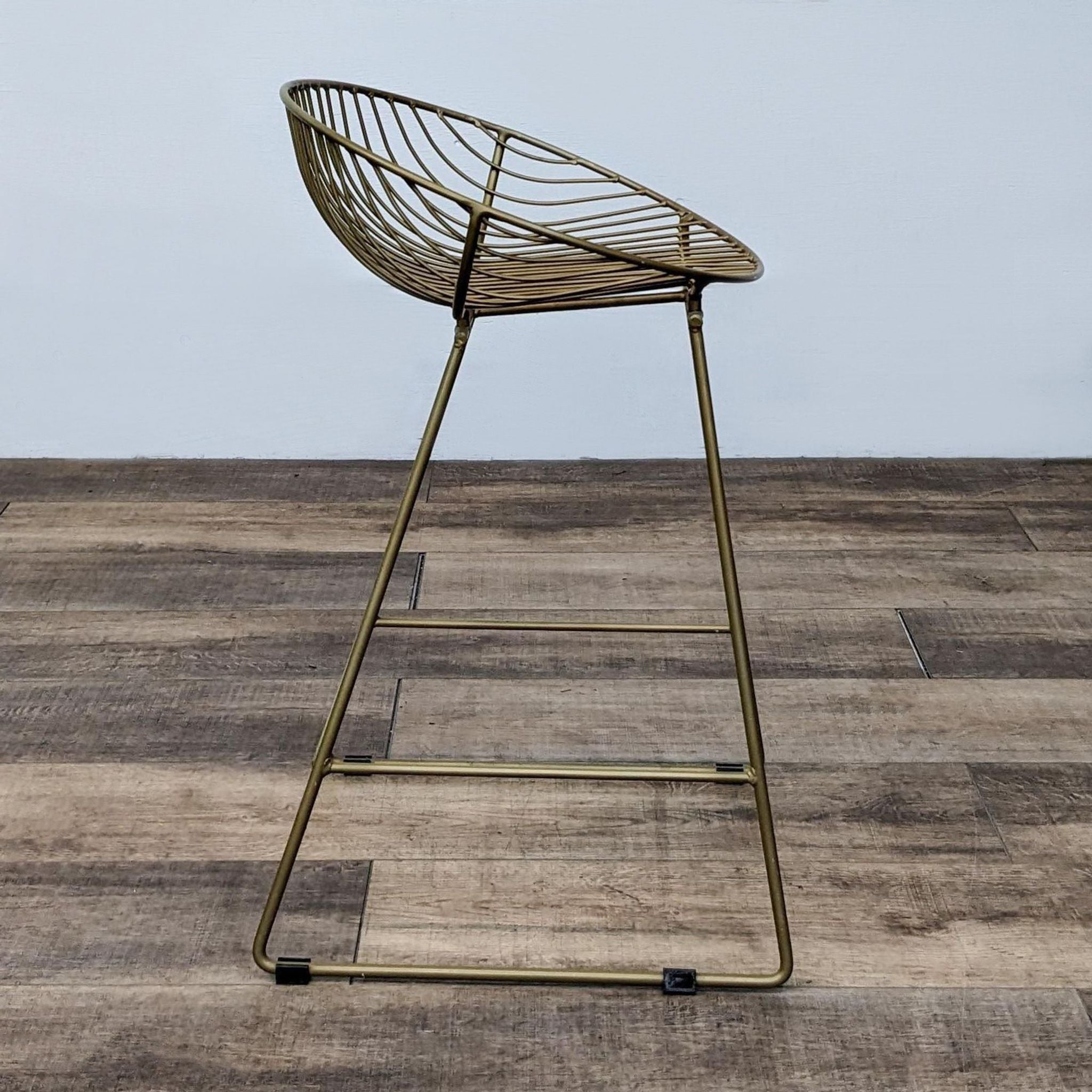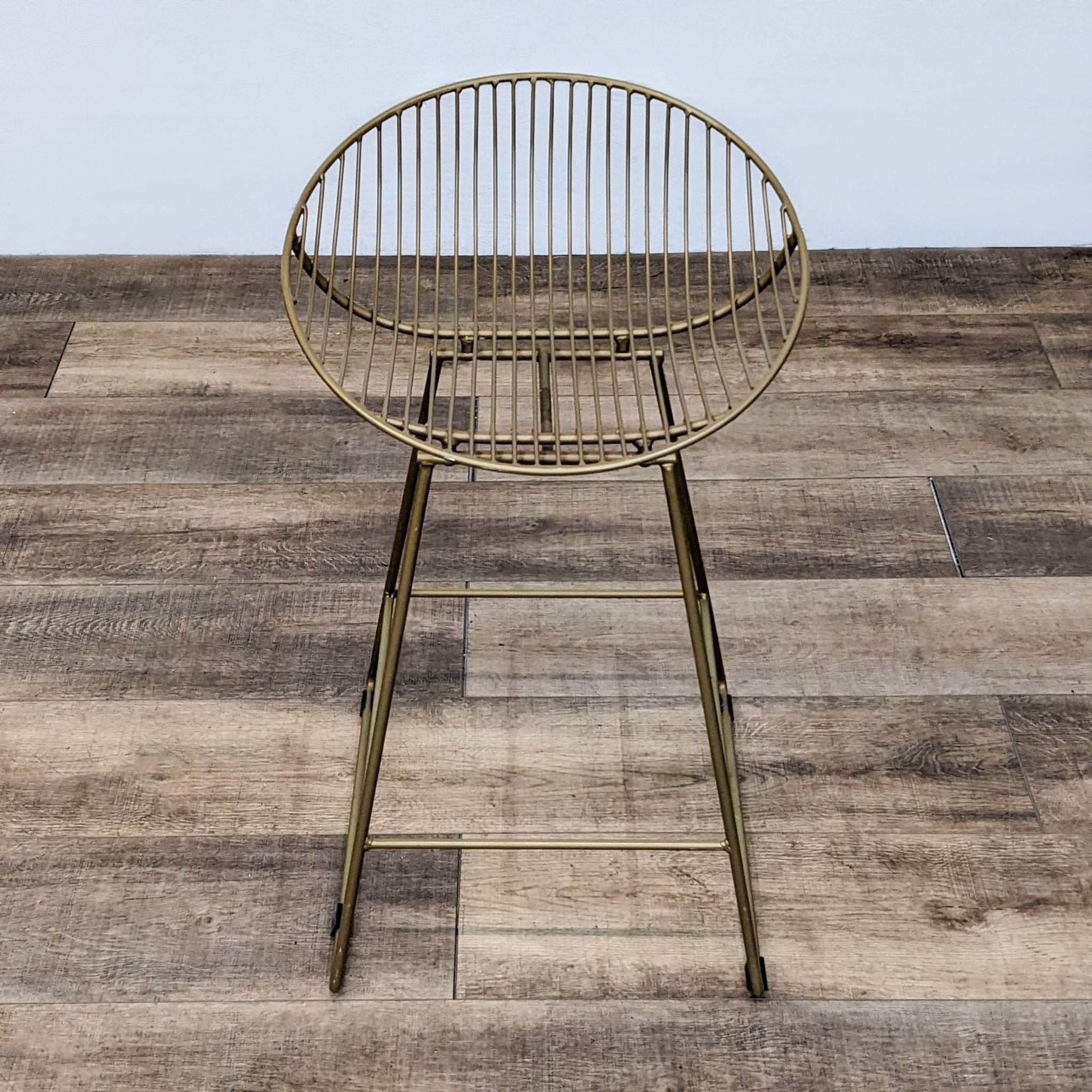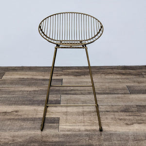 Modern Rounded Back Gold Slat Stool With Foot Rest
