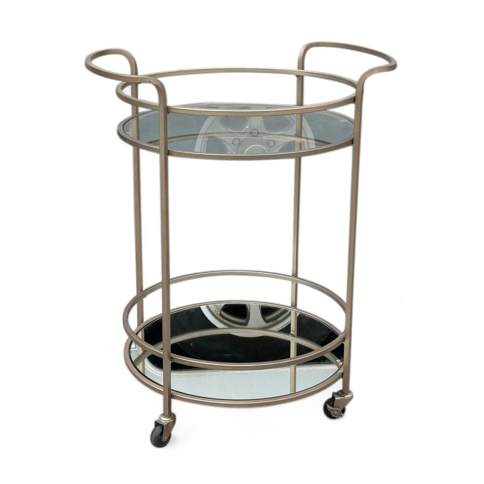 Smoked glass top with mirrored bottom shelf *** Pottery Barn Tristan Bar Cart