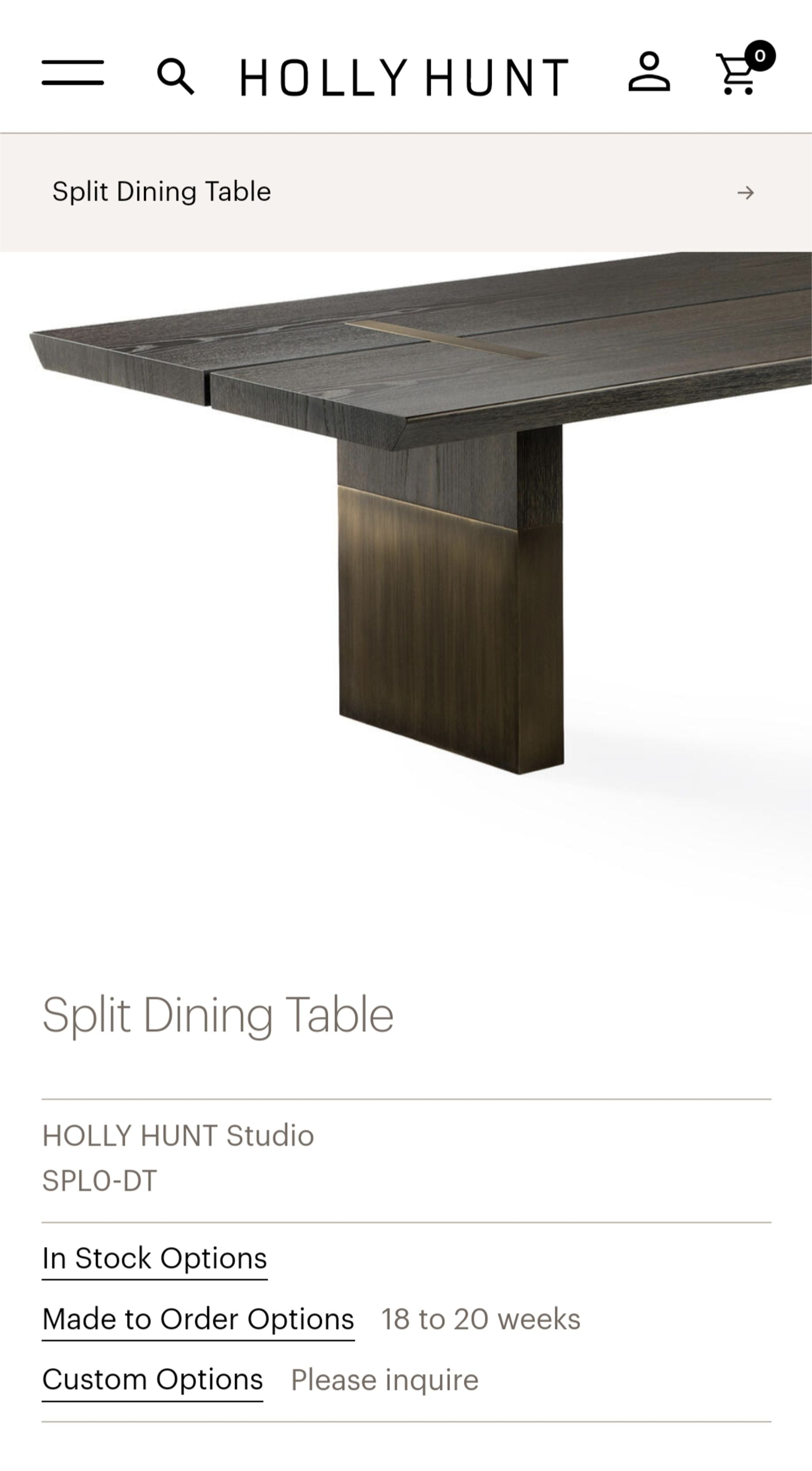 With its substantial scale, bold proportions and architectural lines, the Split Dining Table is a contemporary showpiece with a two-piece tabletop featuring meticulously hand-fitted metal inlays which make for sleek and unexpected details with sheathed pedestal legs. https://www.1stdibs.com/furniture/tables/dining-room-tables/holly-hunt-split-dining-table/id-f_40677062/
