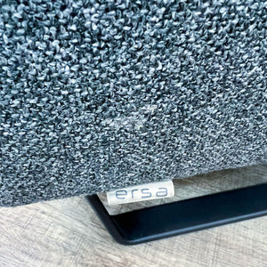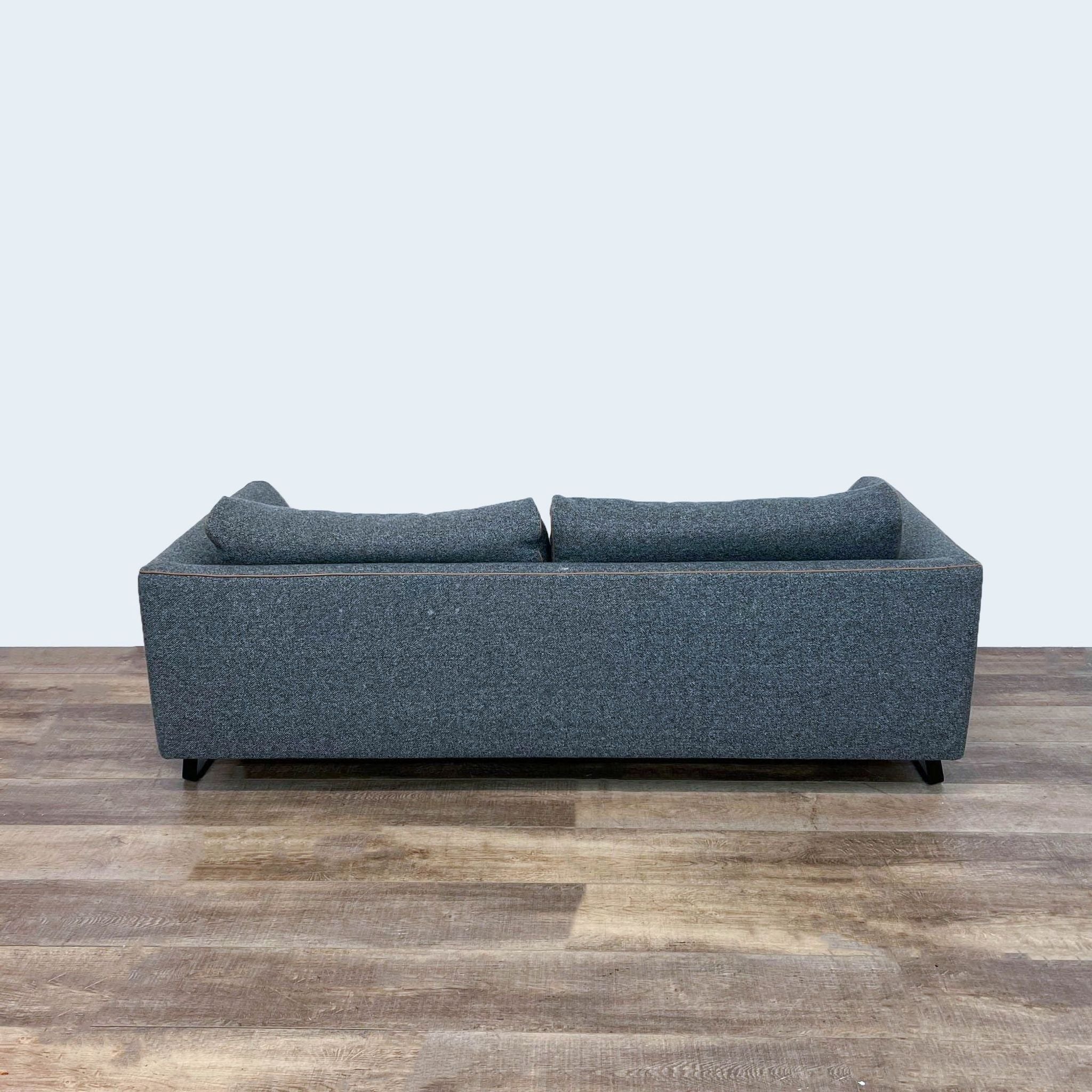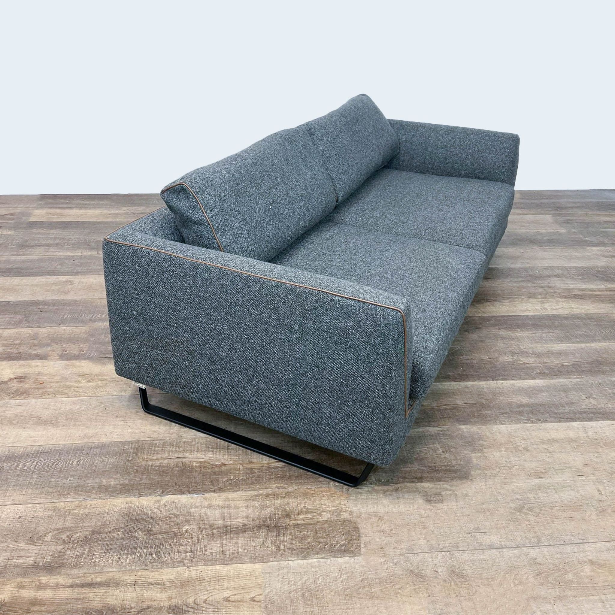 Dark Gray Sofa With Brown Leather Piping On Metal Frame