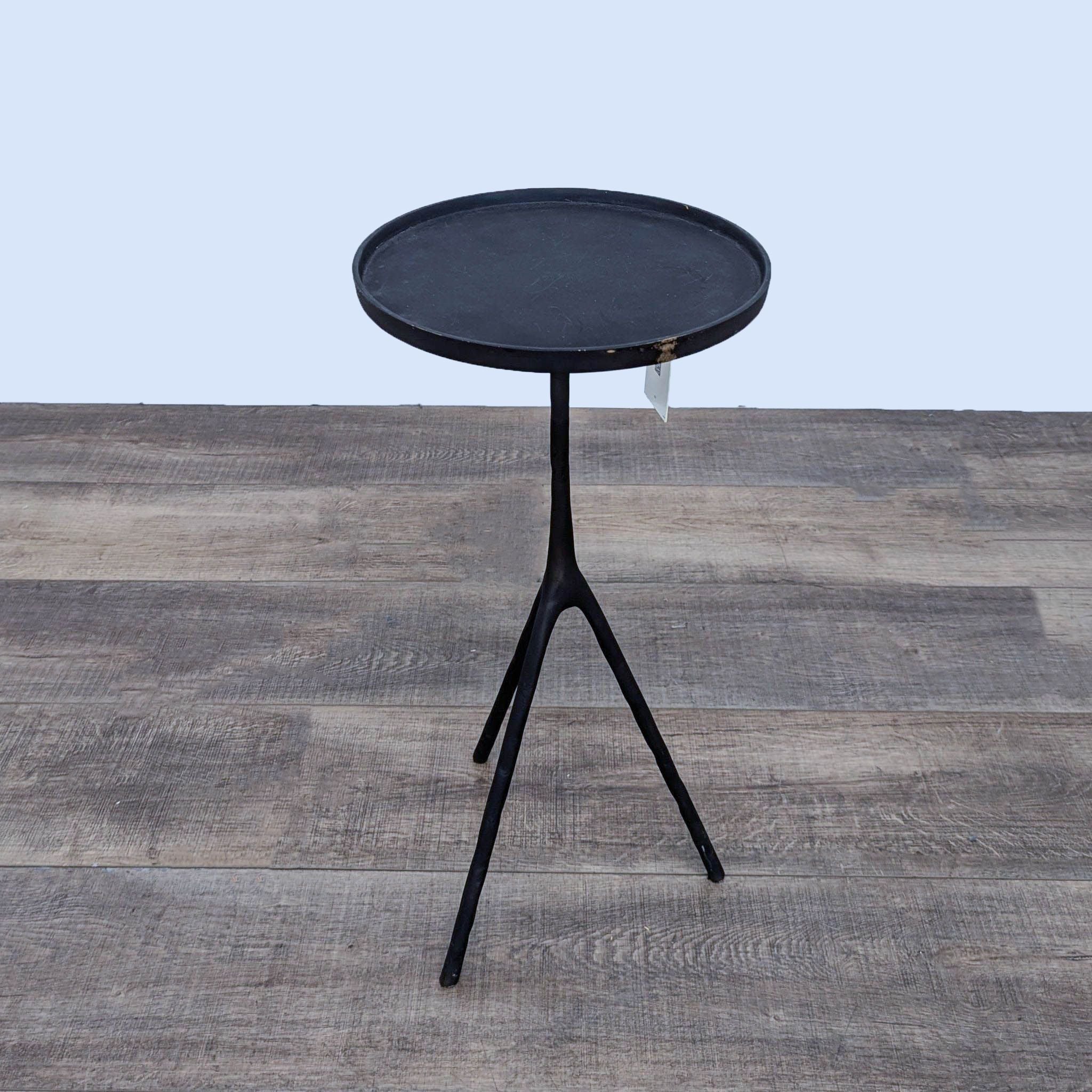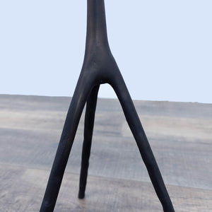 This cocktail table sits on top of a trio of branch-like legs. The piece is handcrafted from cast aluminum with a rich bronze finish.