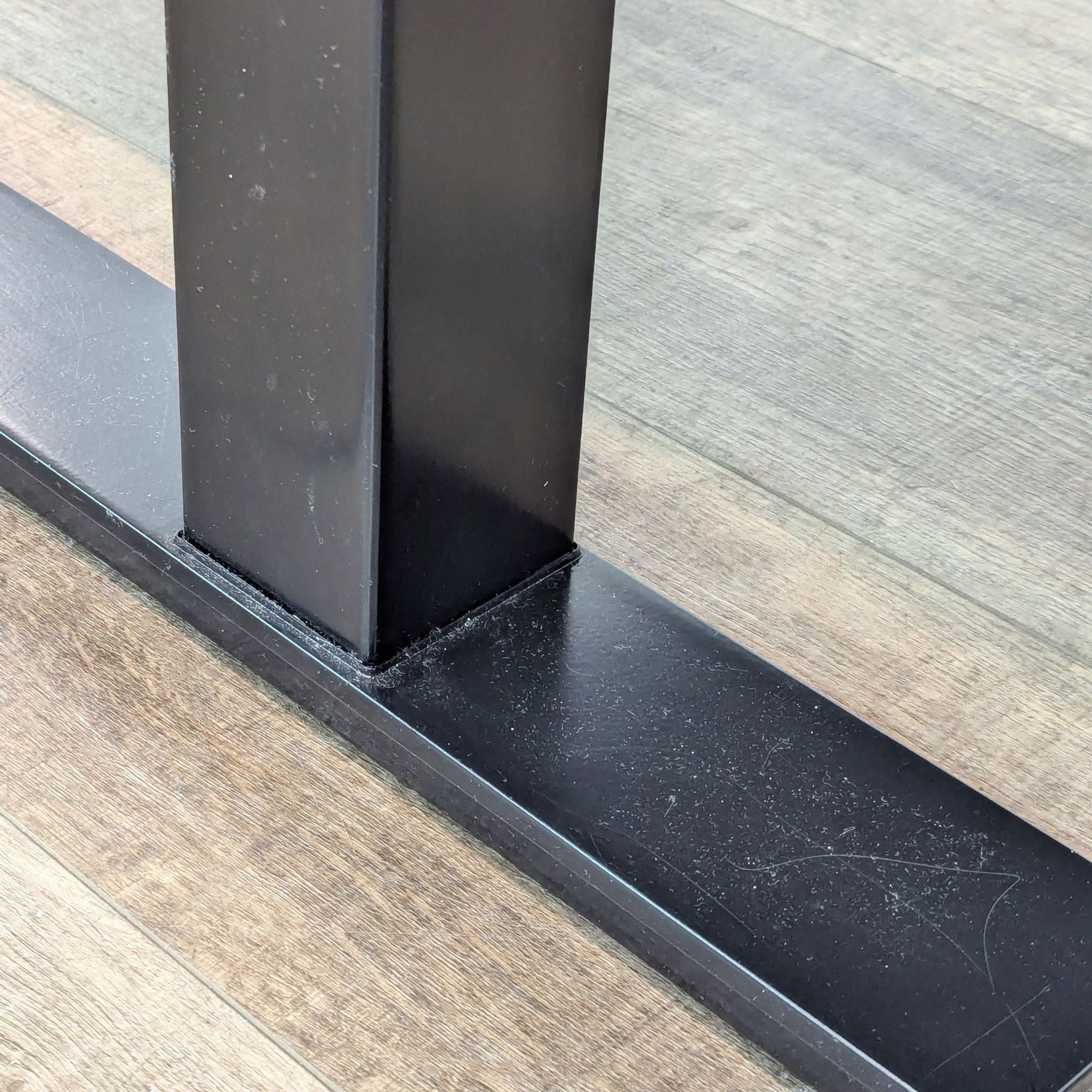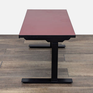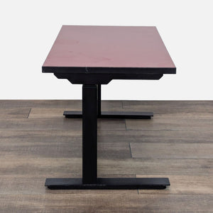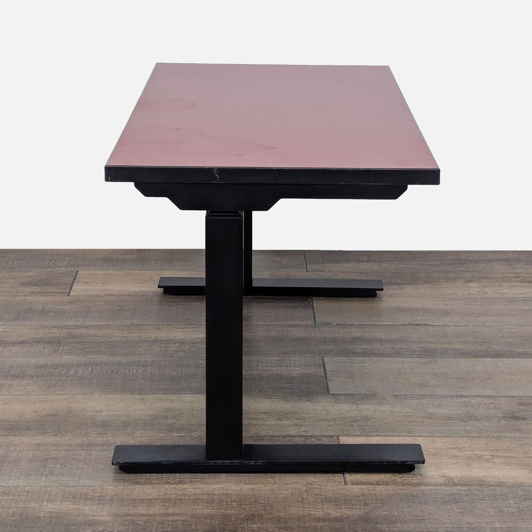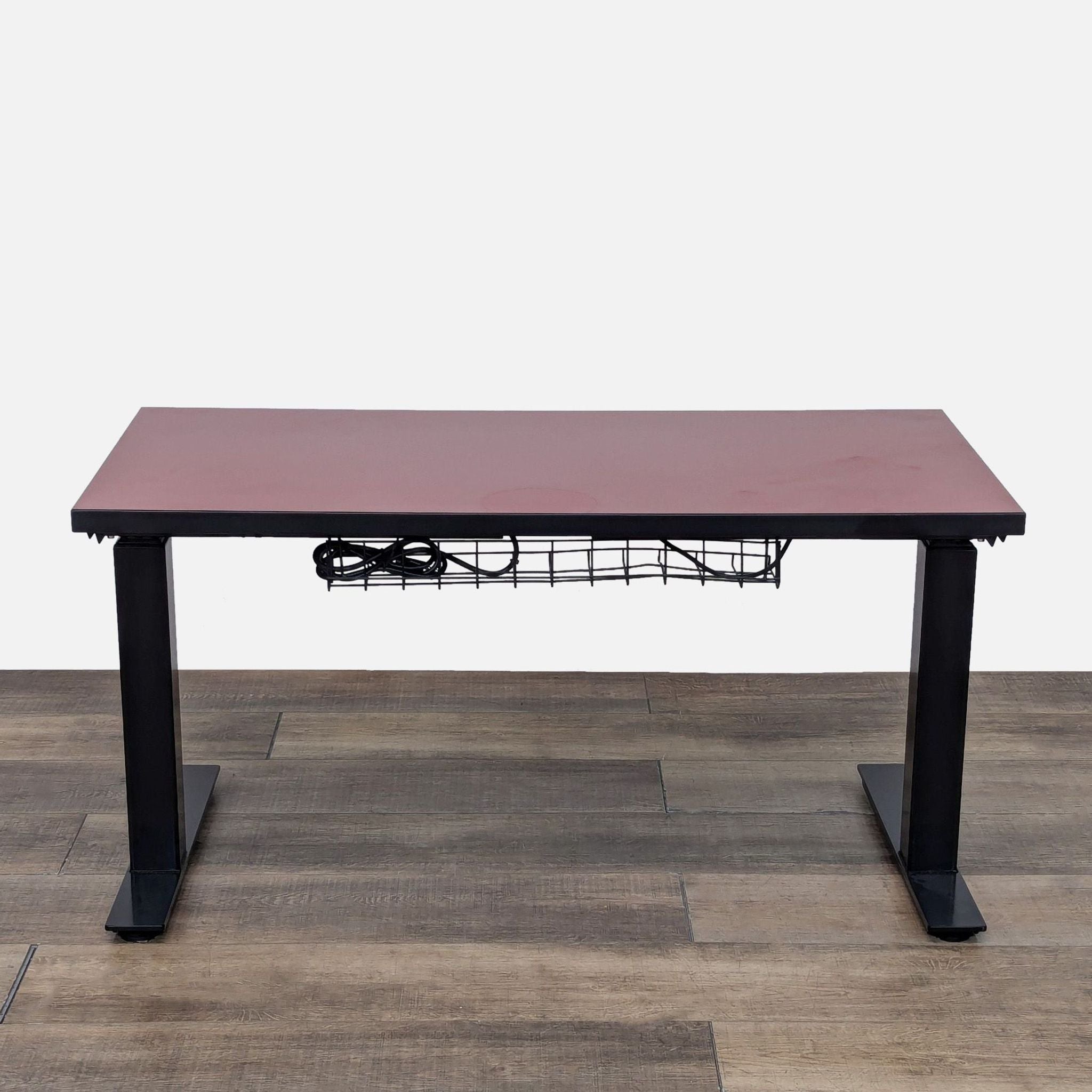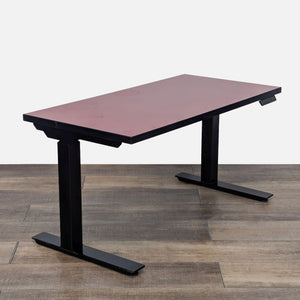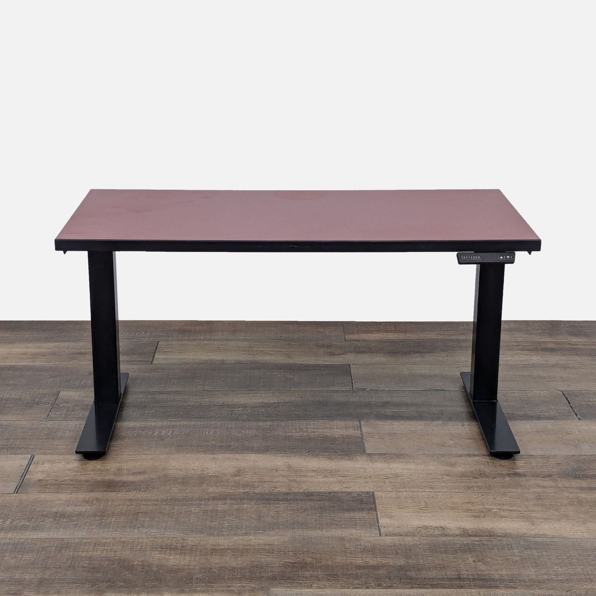 Upgrade your workspace with this sleek adjustable height desk. Featuring a polished top and a sturdy metal frame, it offers both style and functionality.