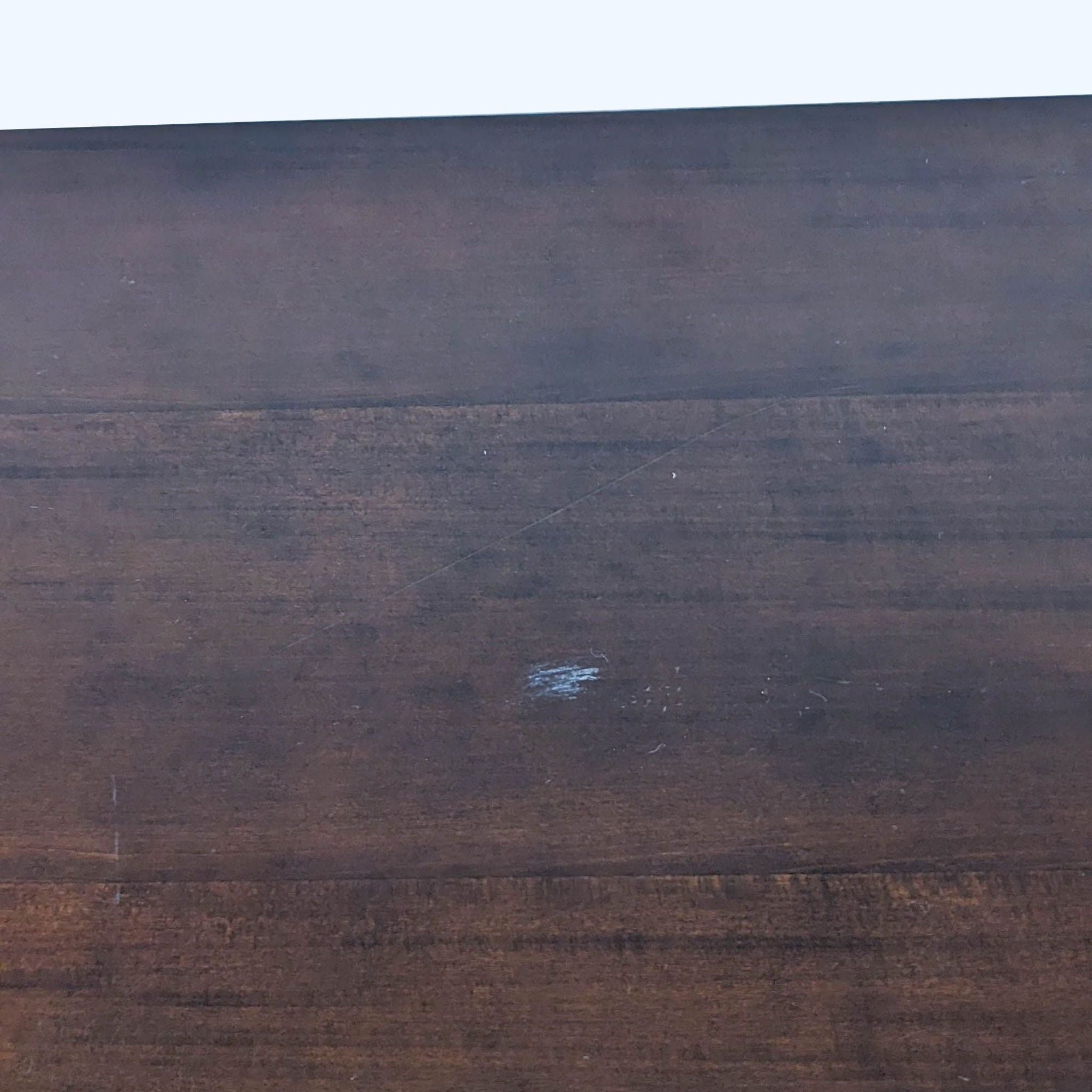 Built from solid wood and veneers in a walnut finish, this dresser sports a clean, uncluttered look with rustic undertones. For storage, it features nine drawers, each set on metal ball-bearing glides.