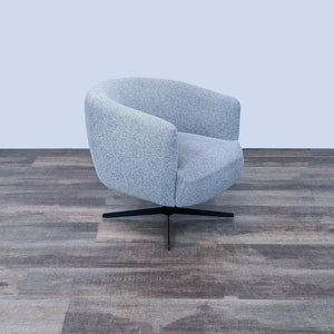 Add a touch of contemporary style to your space with this comfortable swivel lounge chair from Target. Featuring a robust metal base for a smooth 360-degree rotation, its textured light grey chenille fabric upholstery is versatile for any decor.