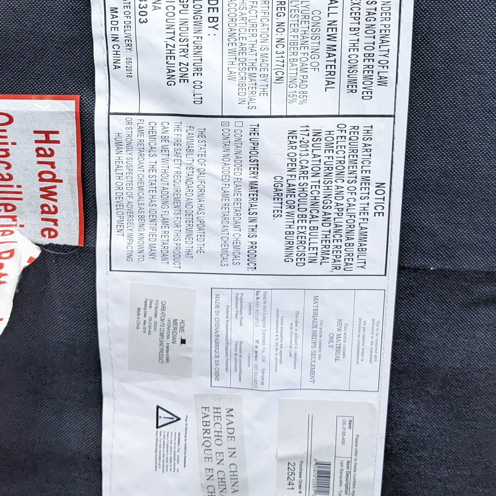 Dark Grey Tuxedo Style Banquette With High Back And Nail Head Detailing