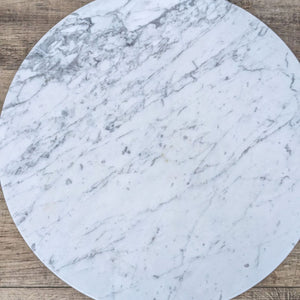 American White Oak in a walnut finish, engineered wood, Italian Carrara Marble