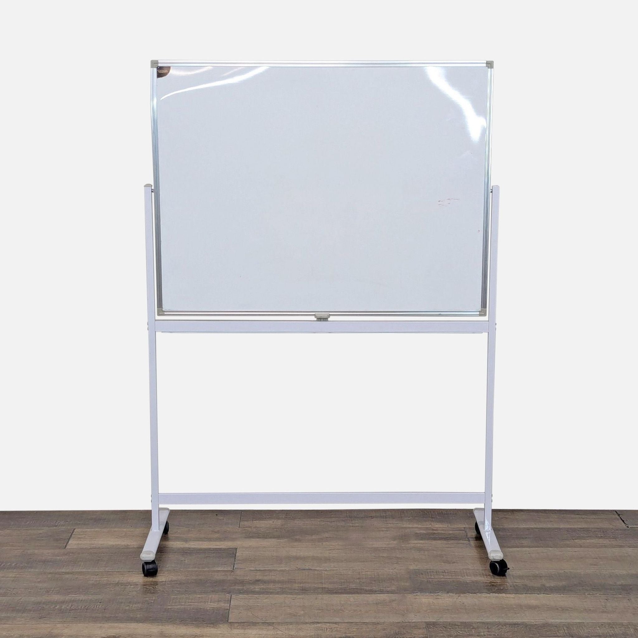 Viotek mobile whiteboard with framed two sided whiteboard with tray.