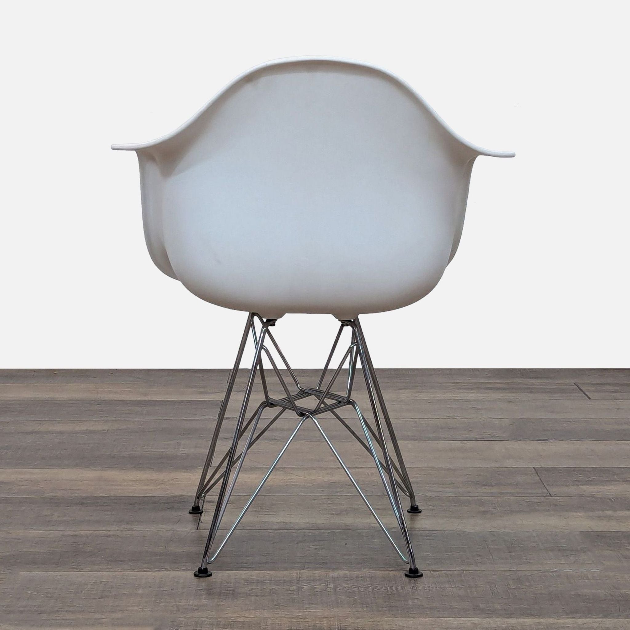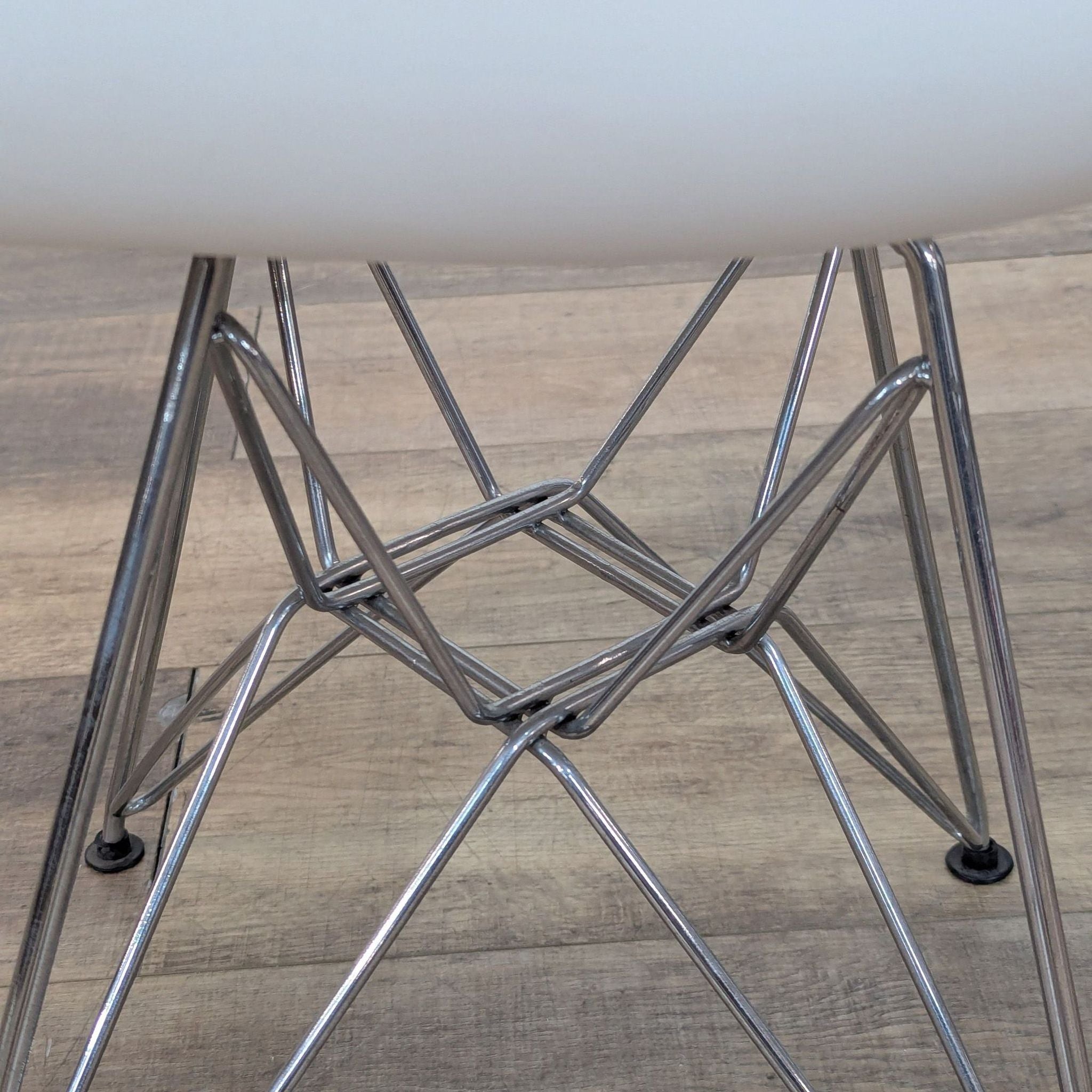 Crafted out of molded plastic for the seat and a chromed steel wire "eifel" base.