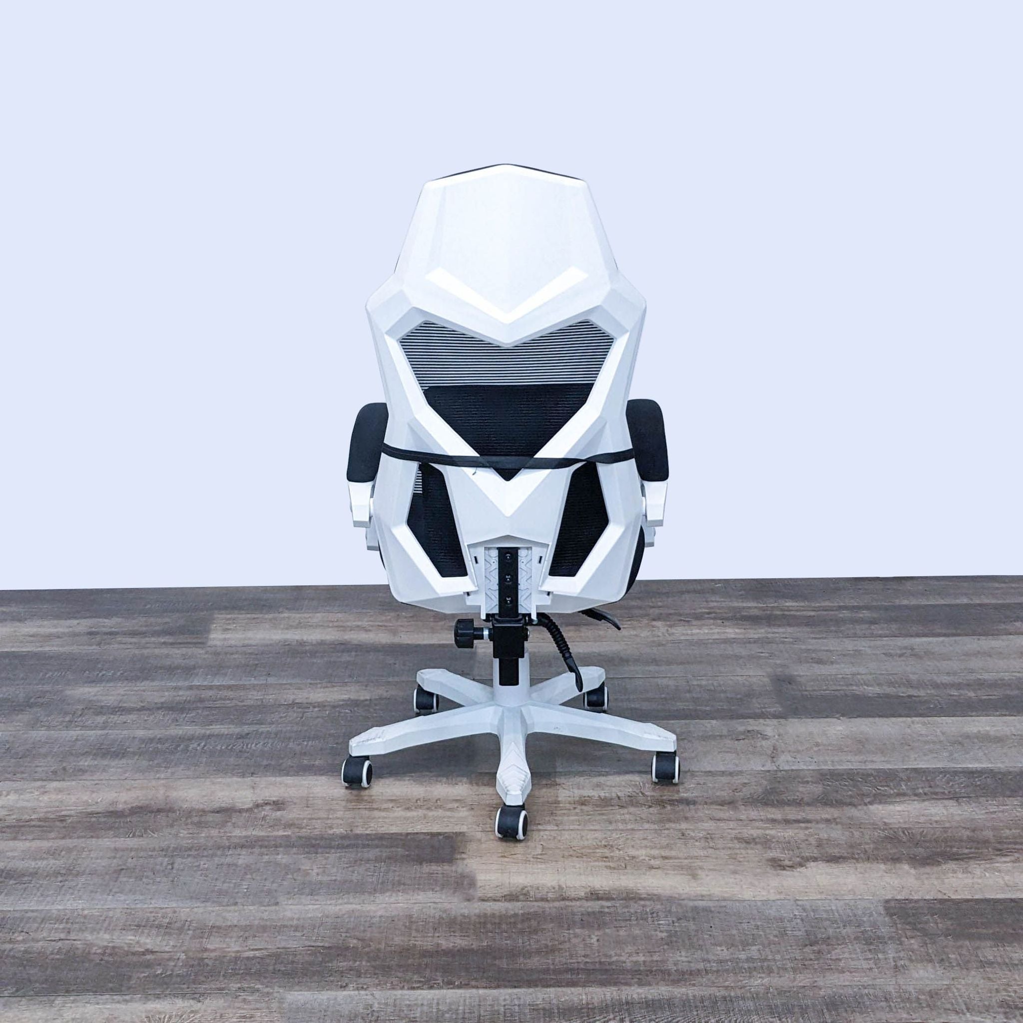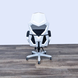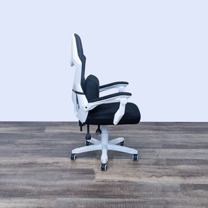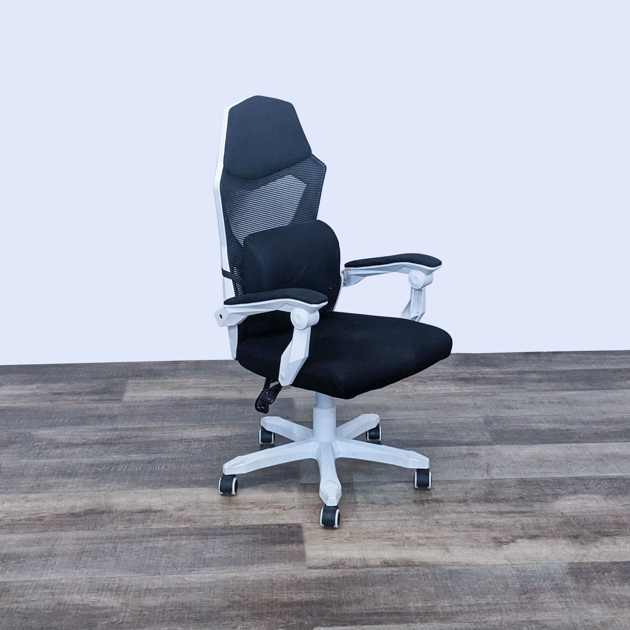 This modern style gaming / computer chair features a cushioned seat, lumbar support and padded headrest that provides sufficient support for your lumbar and neck relieving fatigue from sitting for a long time. This chair also has adjustable height and recline functions and includes a removable lumbar pillow.