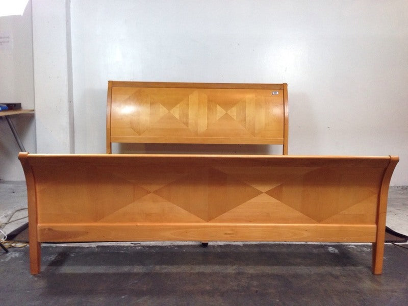 Comprised of a headboard, foot board and side rails. Bearing diamond form embellishments throughout.