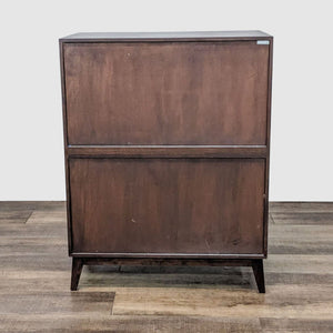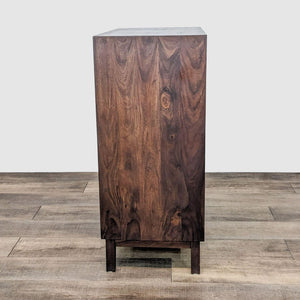 The Steppe dresser by Crate & Barrel features mid century modern styling with a rich dark finish and 5 drawers with recessed handles.