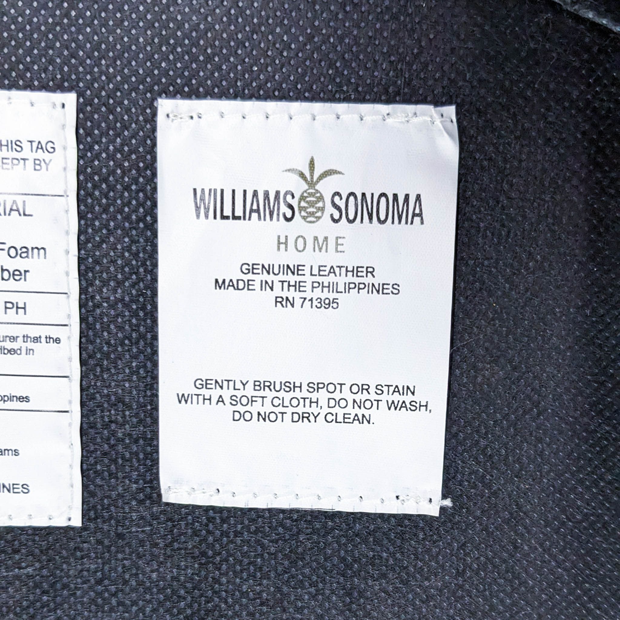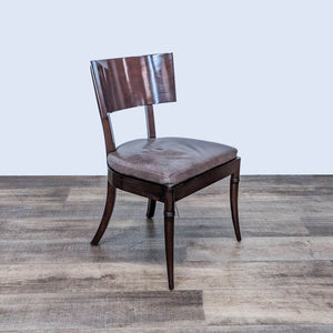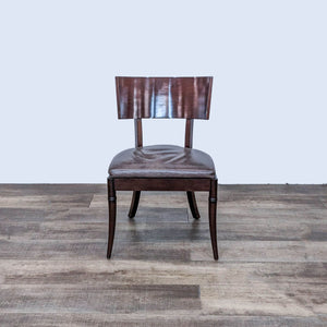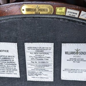 This dining chair from Williams Sanoma Home features a wood scoop back and genuine leather upholstered seat.