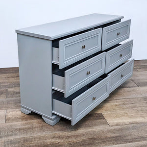 The Belle Isle Furniture Southlake dresser features classic style with 6 drawers on metal glides with metal knob pulls and in in a winter gray finish.