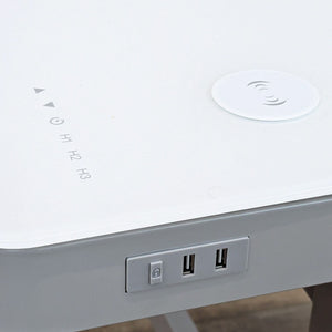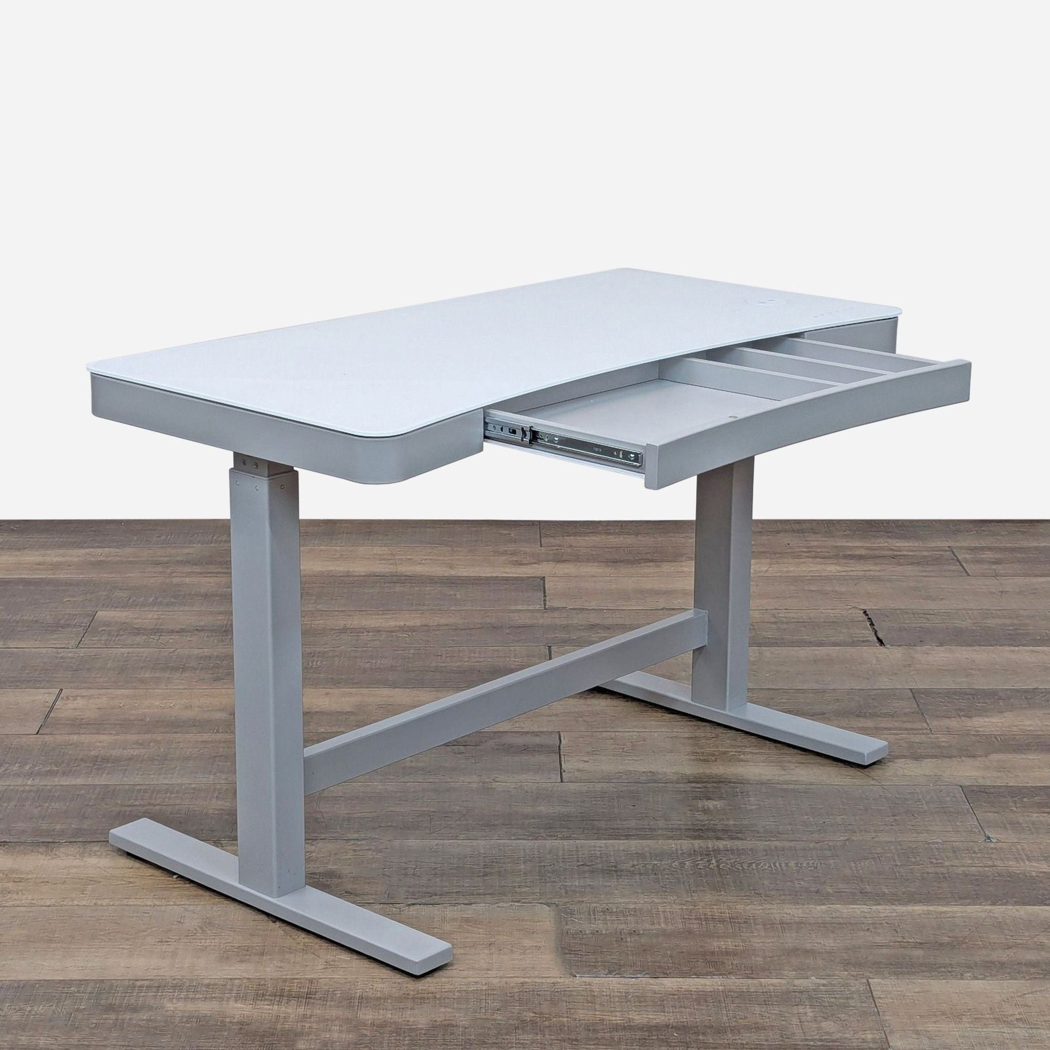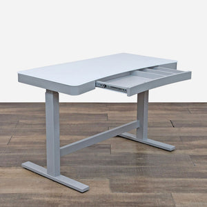 ActiveLife™ electronic standing desk with Illumitouch™ seamless control panel integrated into the ergonomic, water resistant top, charging station and partitioned single pull out drawer.