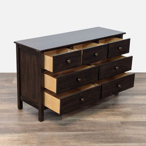 The Kendall Dresser is constructed of wood and veneers with 7 spacious wood glide drawers with matching wood knobs.