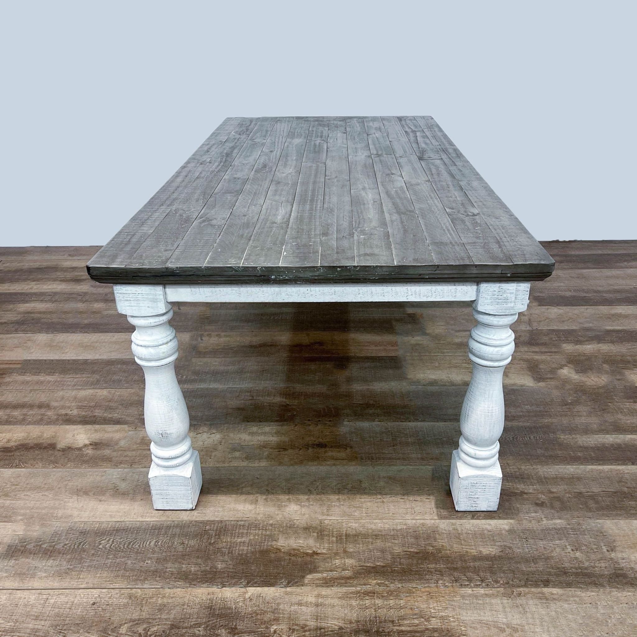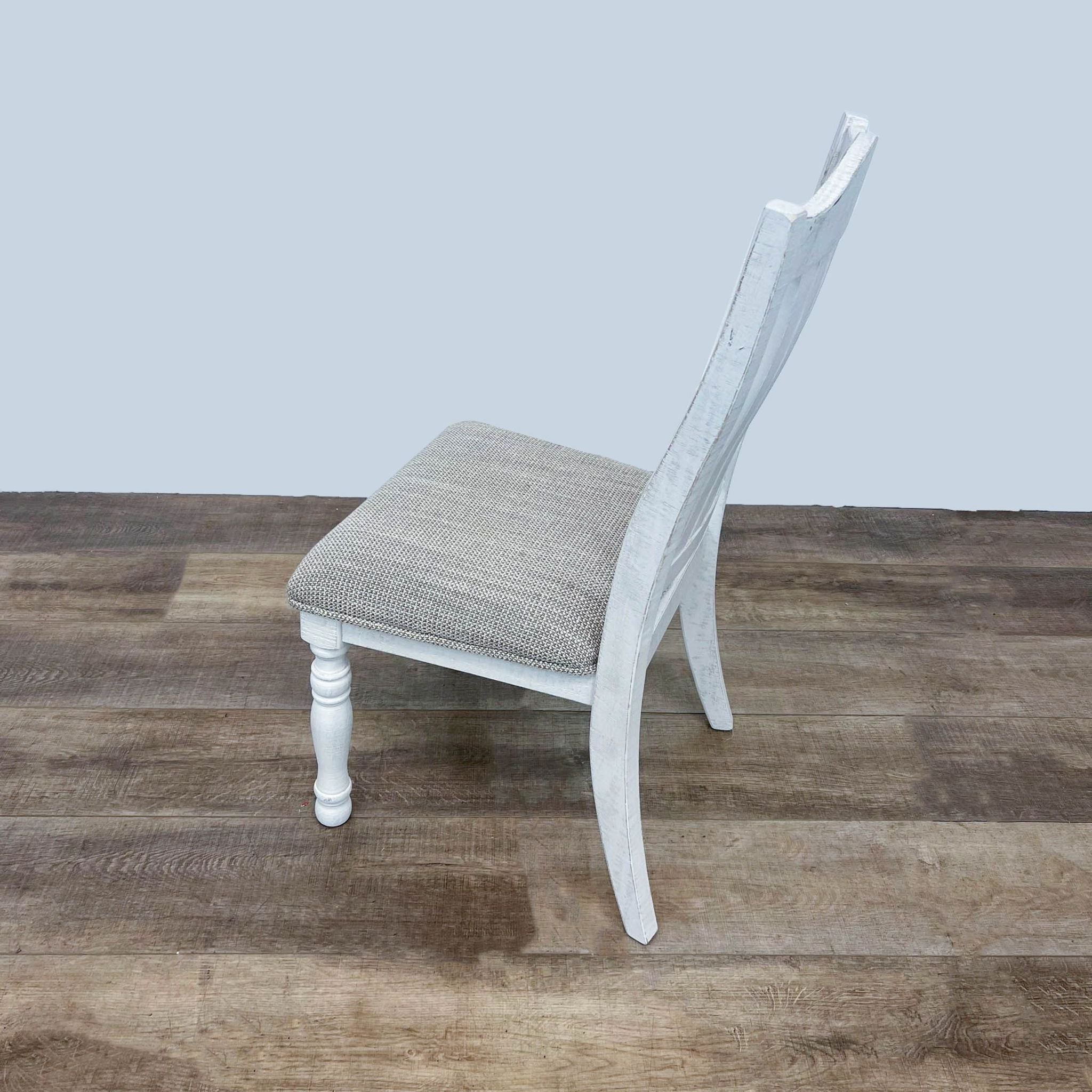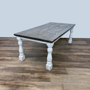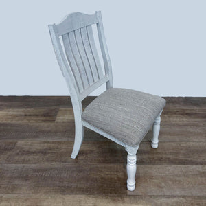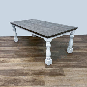 The Havalance 7-Piece Dining Set from Ashley Furniture boasts modern farmhouse style with a distressed, vintage-style blended with weathered neutrals for an utterly charming effect. The table features robust legs for a substantial look while the bent slat back design and cushioned upholstered seat of the dining chairs cater to the aesthetic.