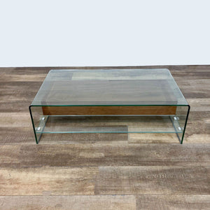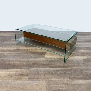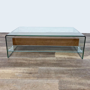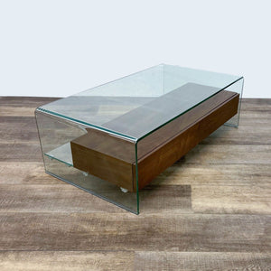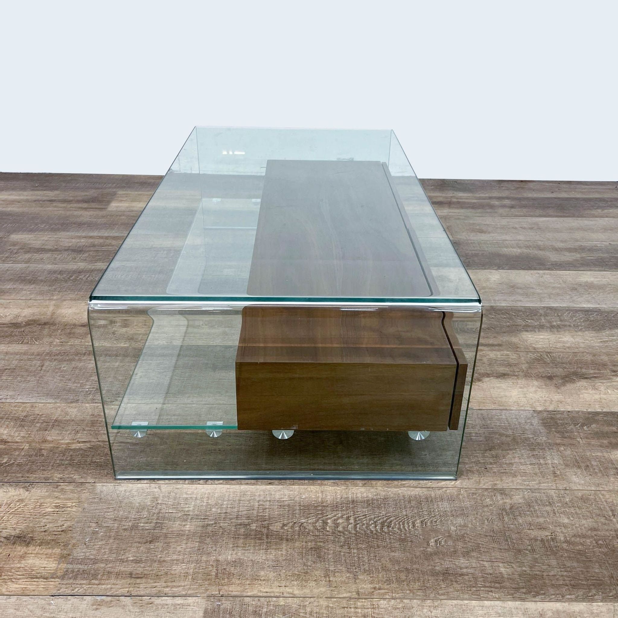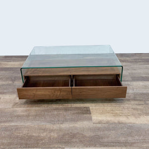 2 walnut drawers within a glass waterfall table