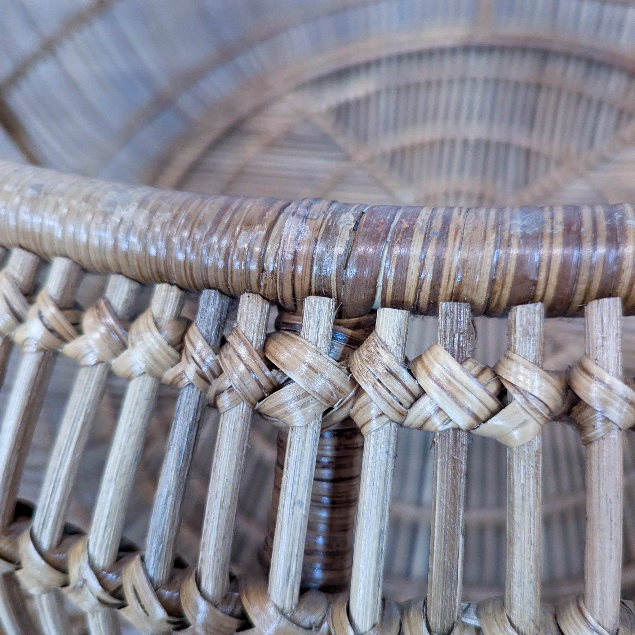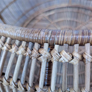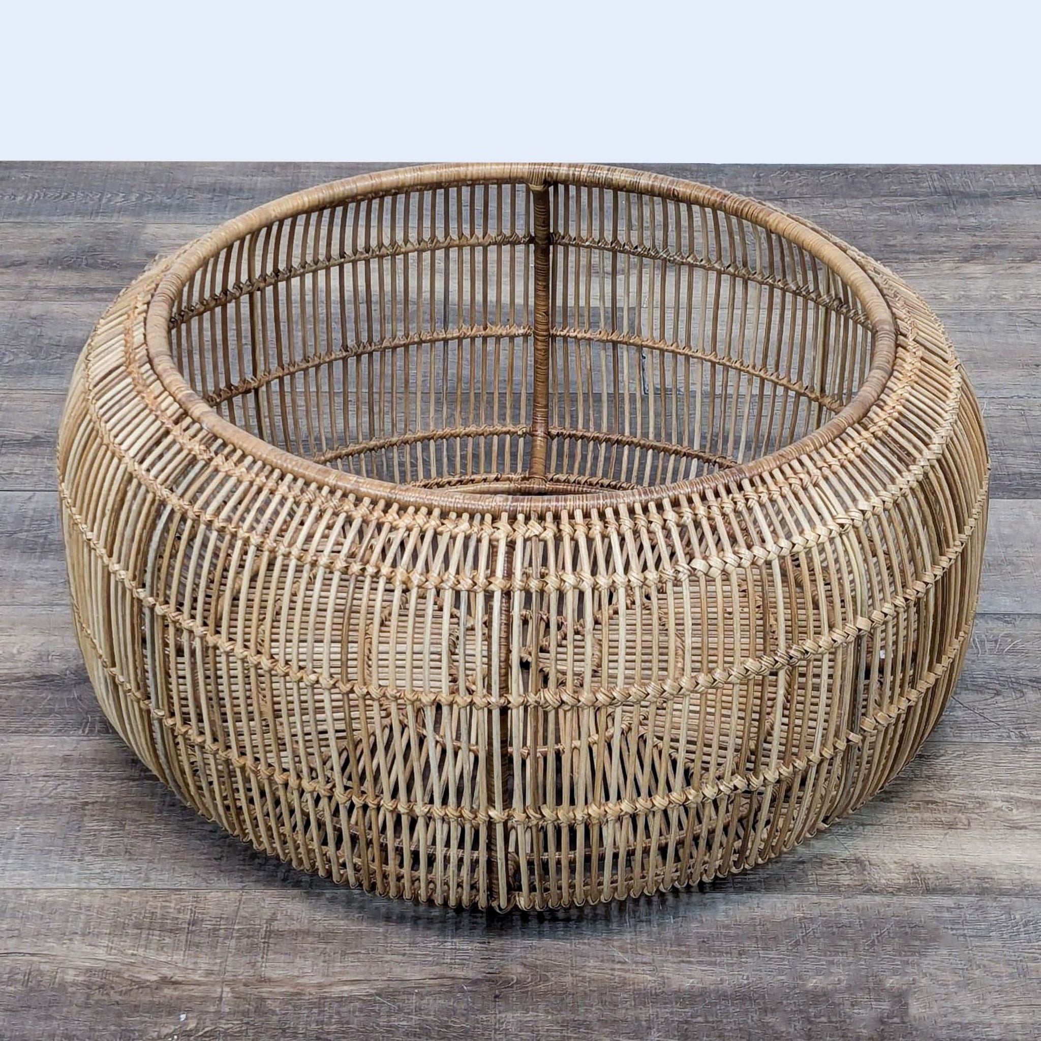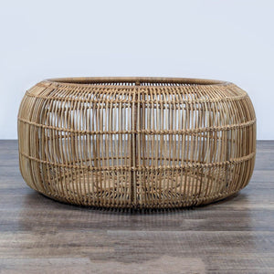 The Amina round coffee table features an open-weave radial design that has an airy, organic feel.