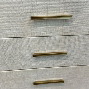The Margot Dresser has six drawers with handwoven raffia over engineered wood fronts in a Whitewashed finish. The legs & drawer pulls are metal in a Champagne Bronze finish.