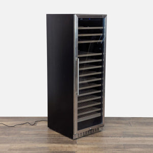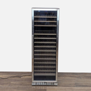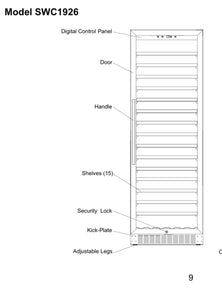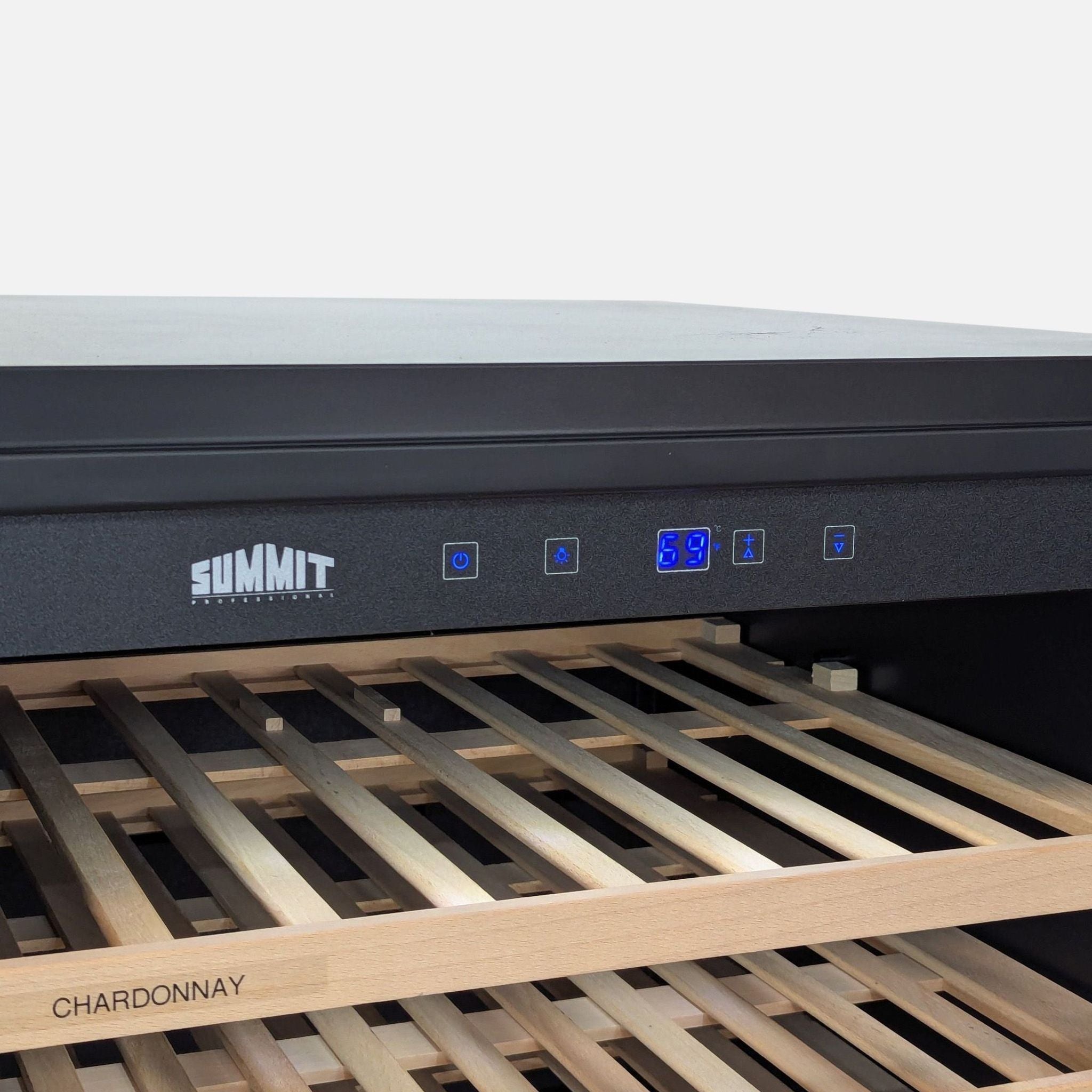 The Summit SWC1926 Stainless Steel Wine Refrigerator offers elegant storage with a modern glass door design. Its spacious interior holds multiple bottles, keeping them at the ideal temperature for preservation and serving. Adjustable shelving allows for flexible organization to accommodate various bottle sizes. With its sleek stainless steel finish and glass display, it adds both style and functionality to any kitchen or bar space. 24 Inch Freestanding/Built-In Wine Cellar with 171 Bottle Capacity, 15 Slide-Out Wooden Shelves, High Temperature Alarm, Temperature Memory Function, Digital Thermostat, Reversible Door, Factory Installed Lock and Automatic Defrost: Black Cabinet, Left Hinge