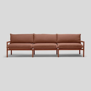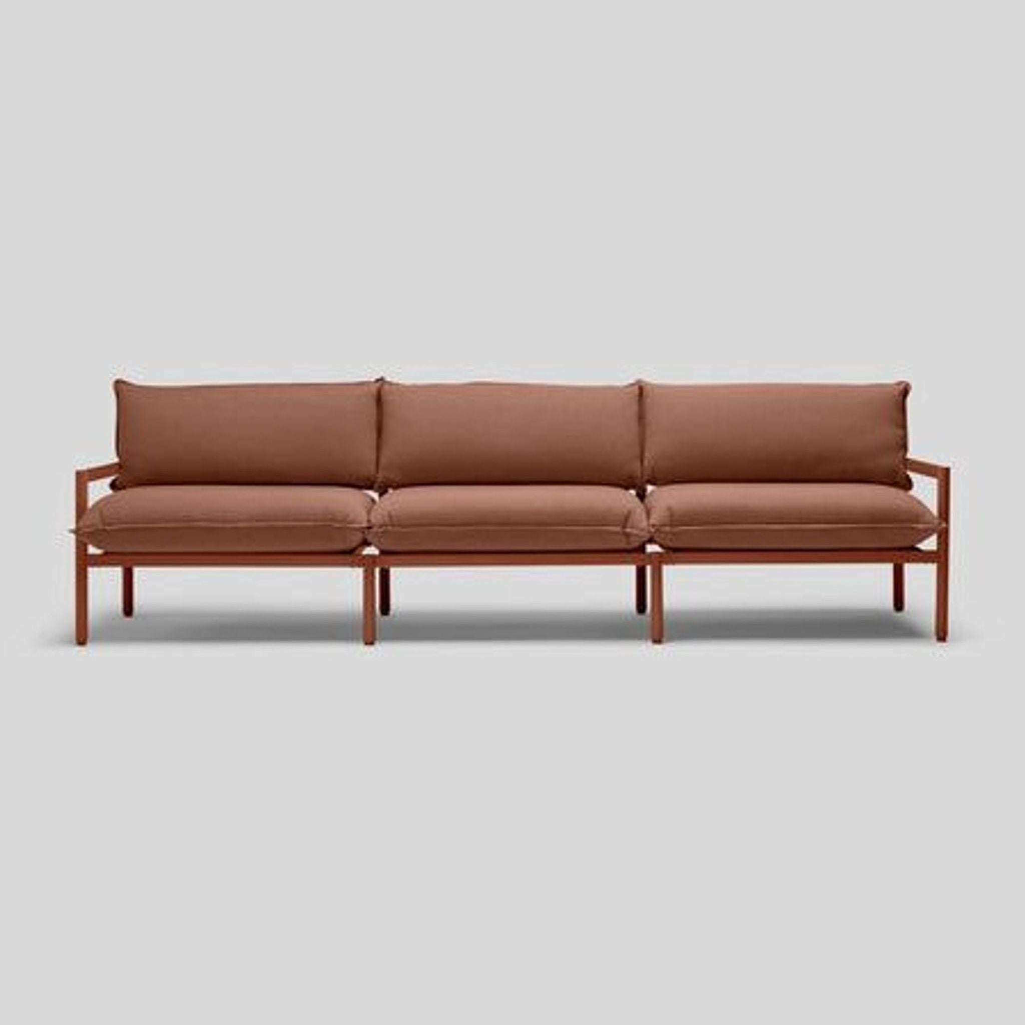 The Terra outdoor sofa in Putty made with a resilient aluminum frame and monochromatic recycled Sunbrella® fabric.