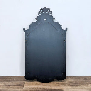 Ethan Allen Rococo-style parcel gilt Chinoiserie mirror with pagoda and landscape decoration.