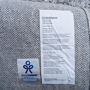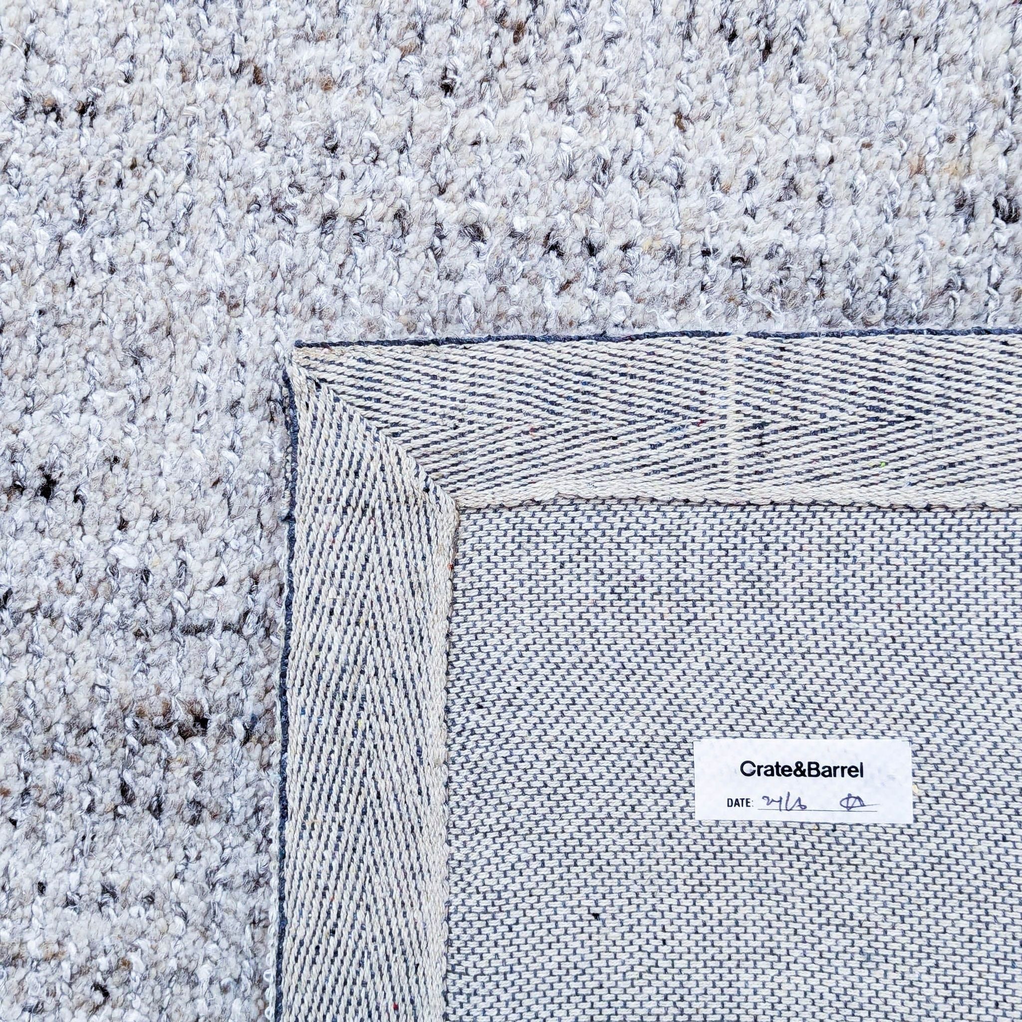 The Vienne area rug is subtly striped in mottled shades of beige with a handwoven dense, looped pile.