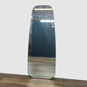 The Elroy Mirror by CB2 features a thin walnut frame steam bent around an inset mirror that hangs vertically or horizontally.