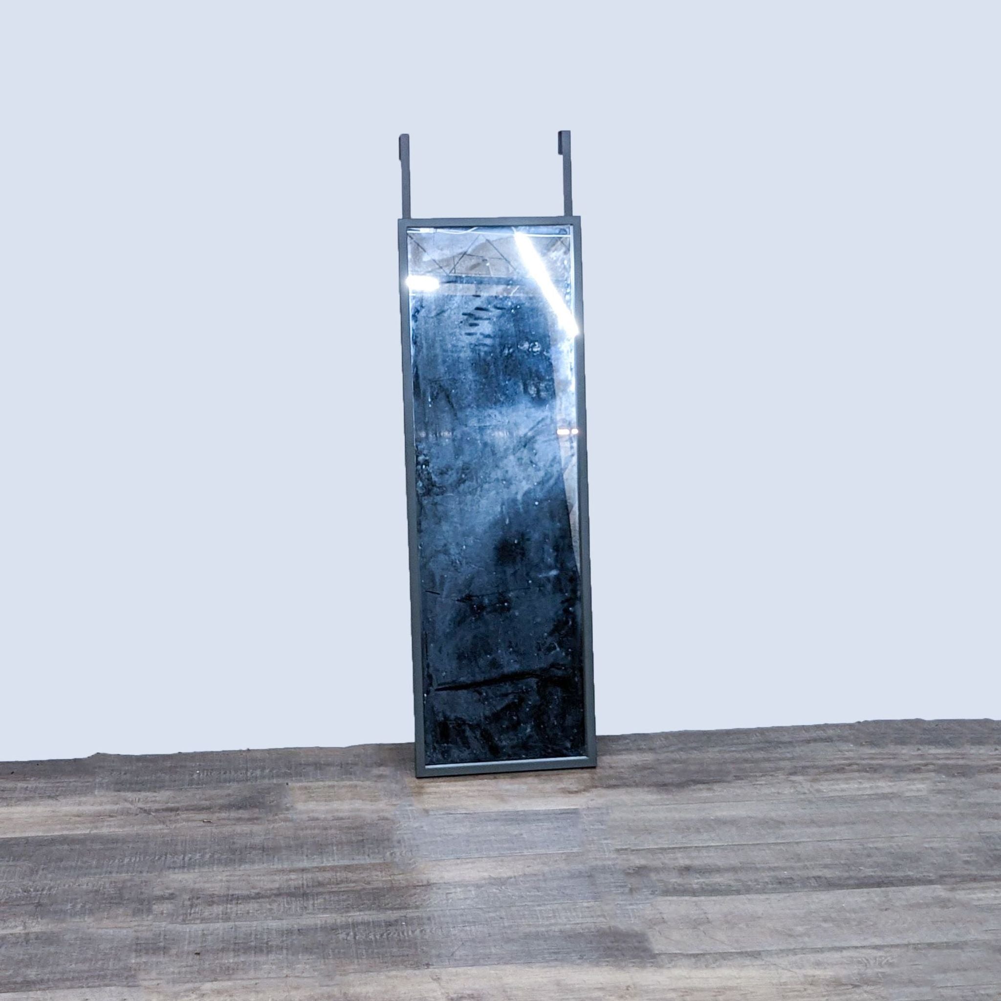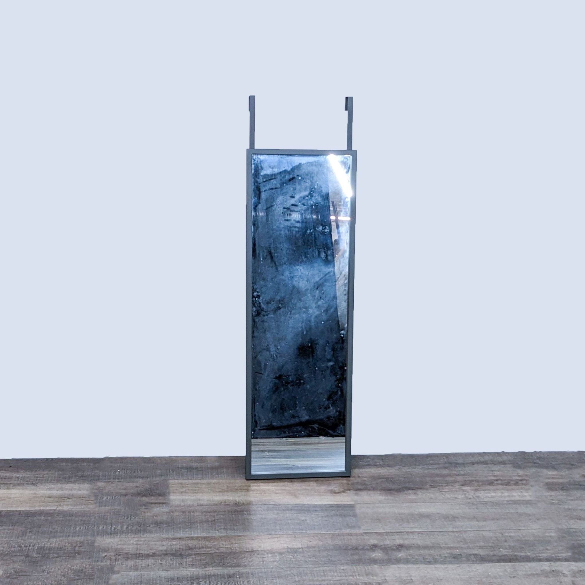 This full length mirror from Crate & Barrel is framed and features metal hangers that allows you to hang it from a door.
