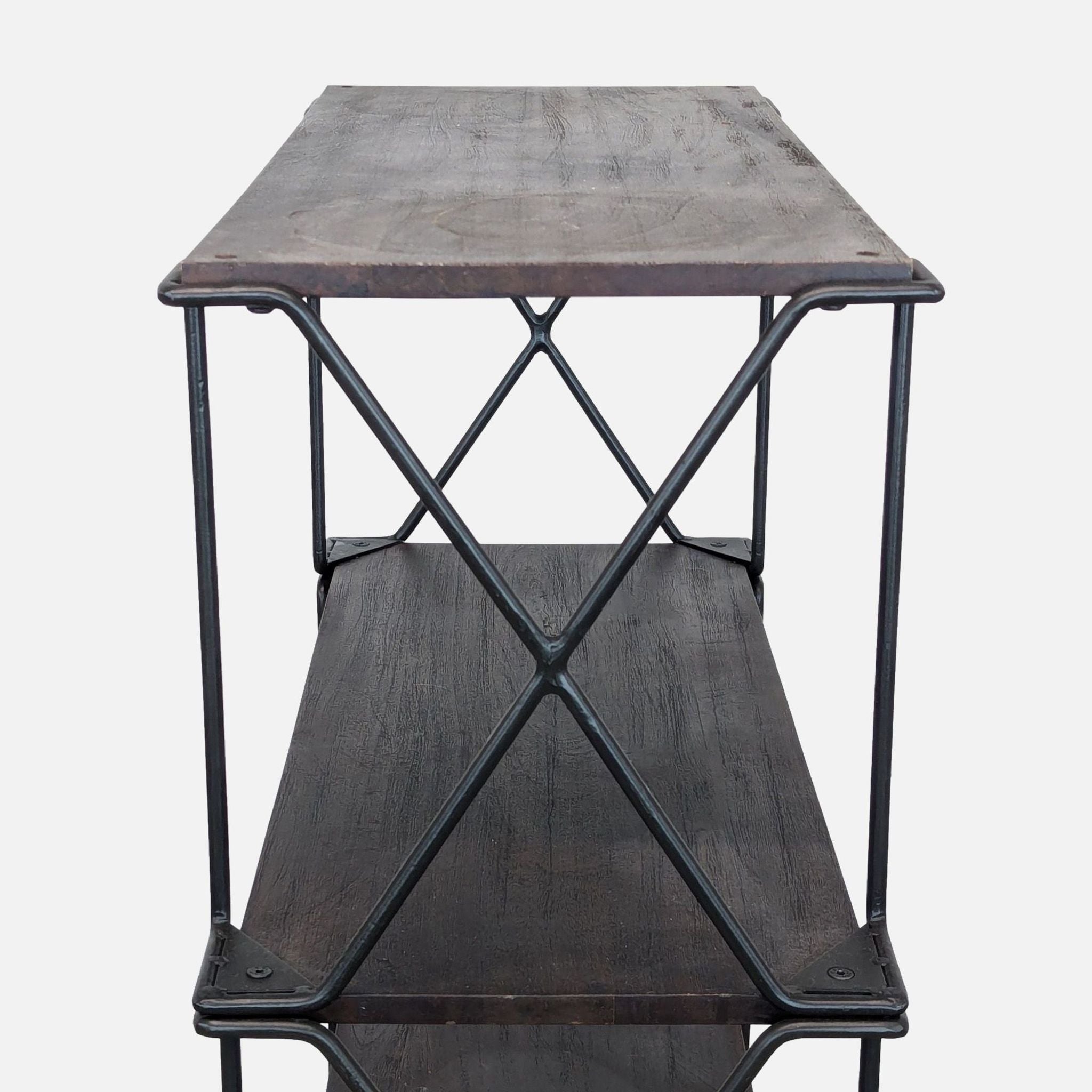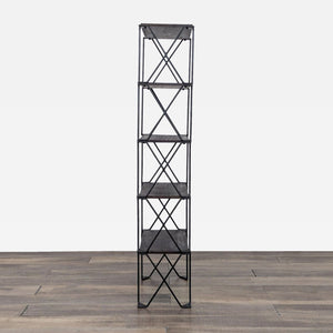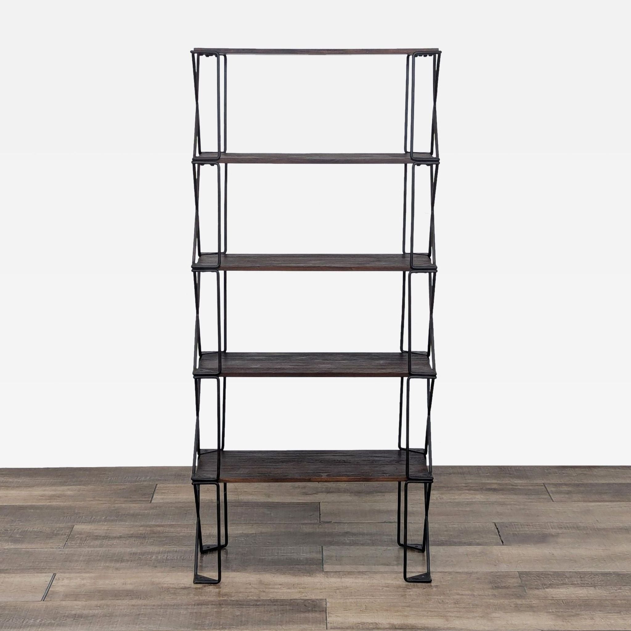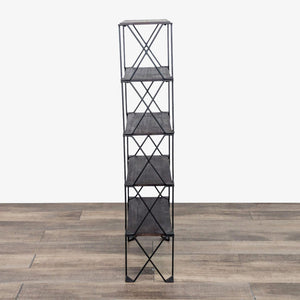 The Dublin Bookshelf by Pottery Barn features a metal frame with Acacia wood shelves.