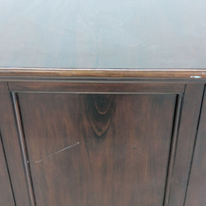 Mahogany and veneers with bronze finish brass hardware