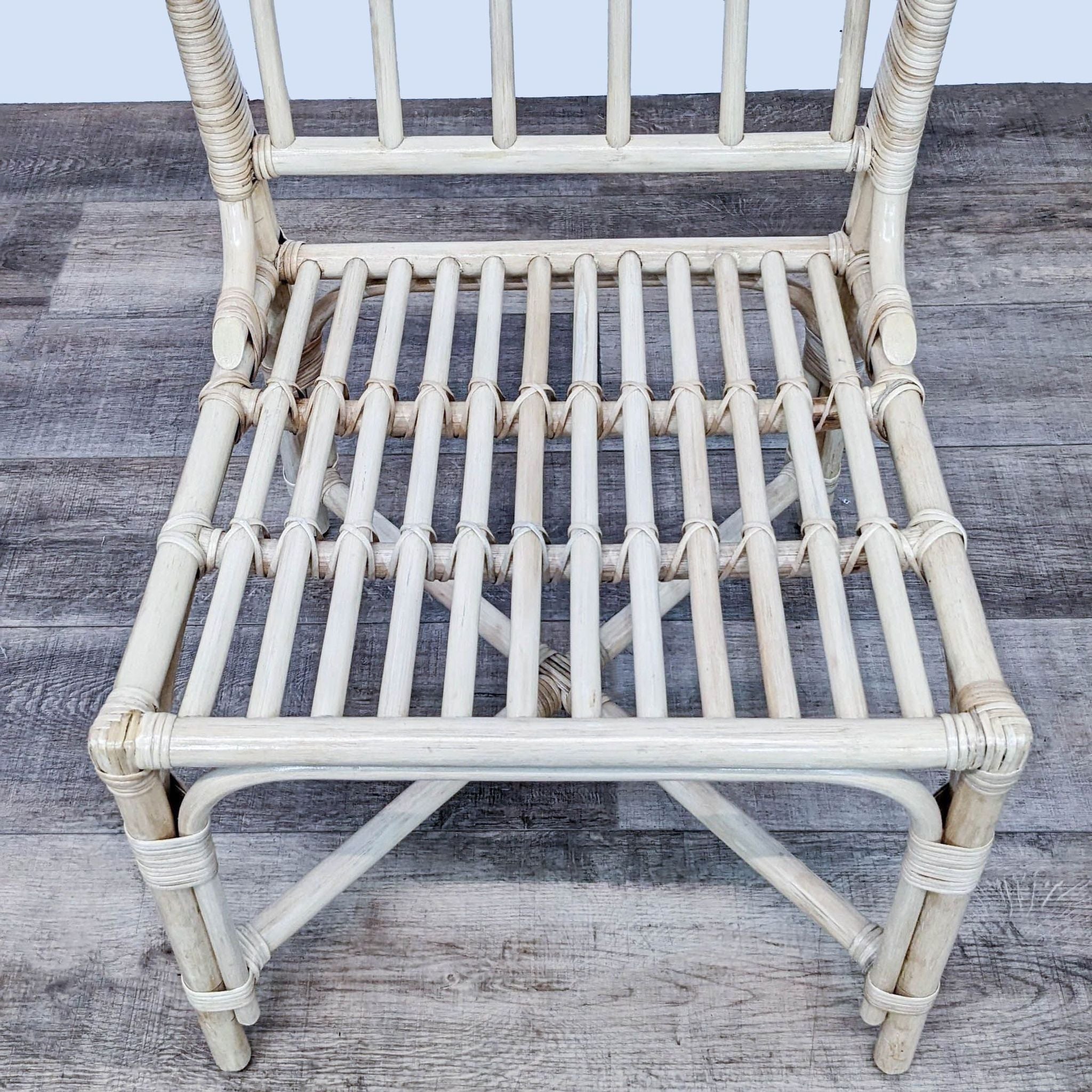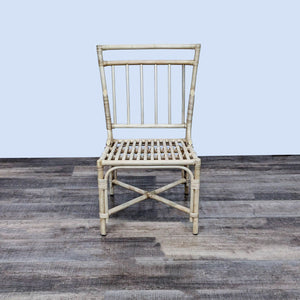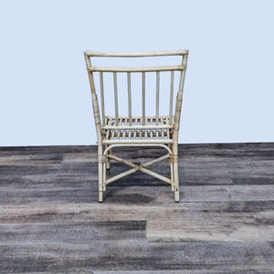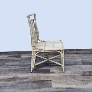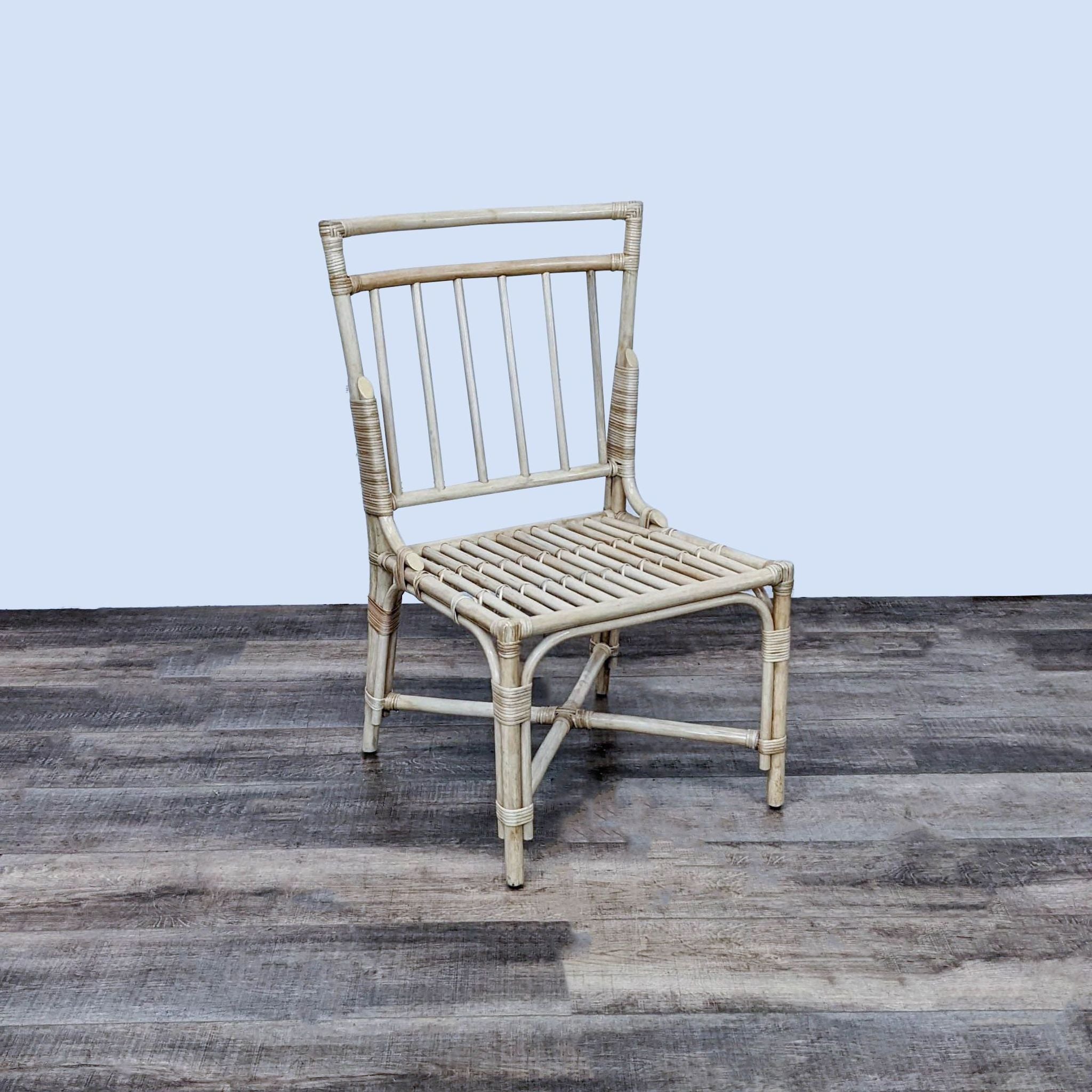 This side chair by Pottery Barn features a sleek and airy profile with the warmth of rattan construction to liven up any room.
