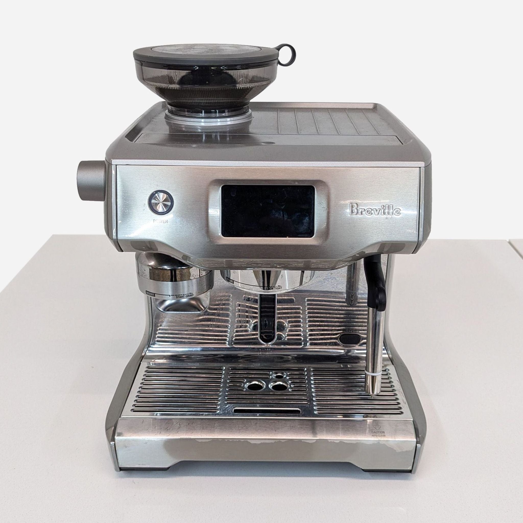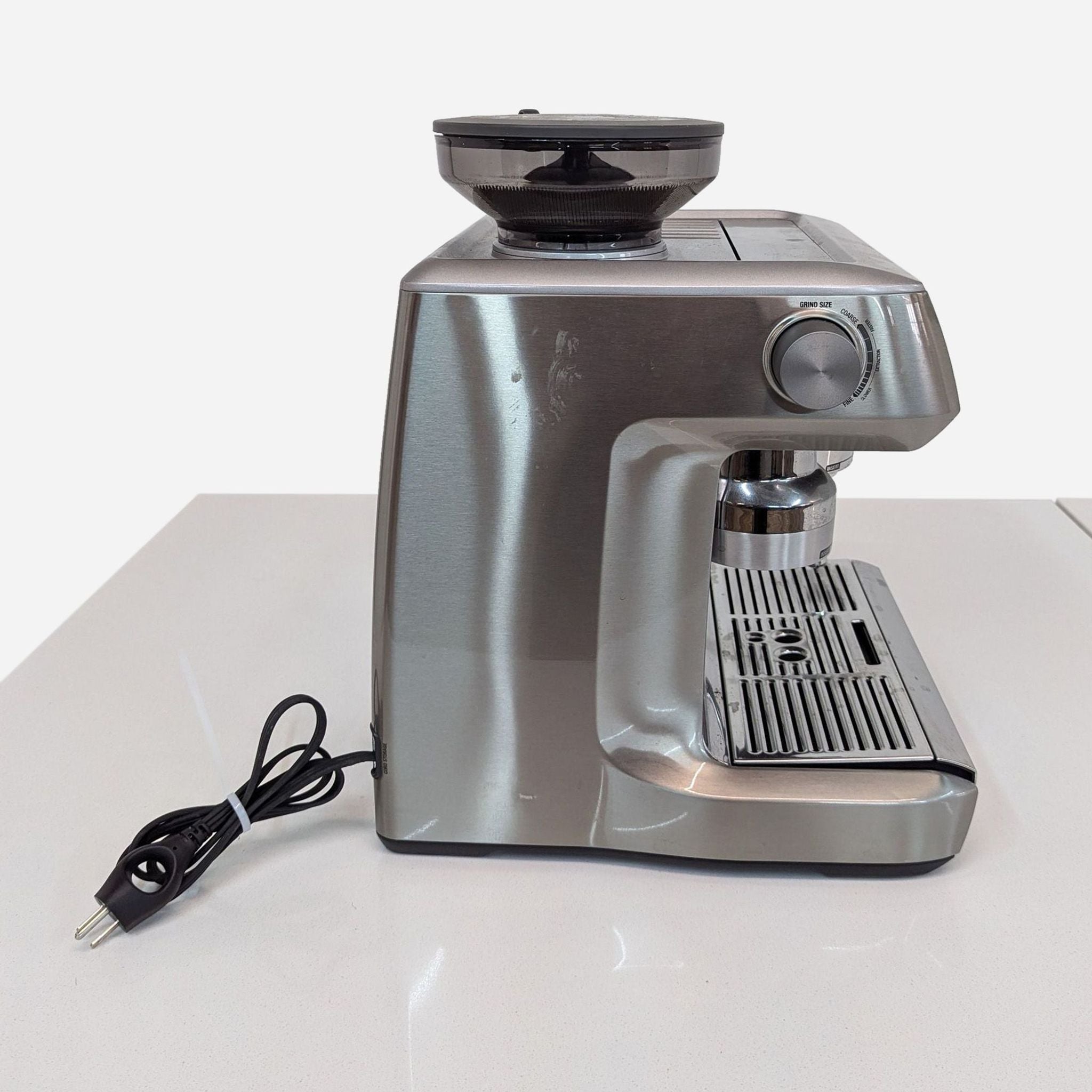 Elevate your coffee experience with the Breville Coffee Maker. This machine features an integrated grinder for the freshest coffee grounds, a steam wand for perfectly frothy milk, and a sleek stainless steel design. Ideal for home baristas, it comes with an easy-to-use digital display and customizable grind size settings. Plug-and-play with the included power cord. Ready to brew!