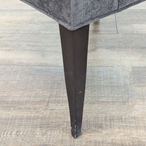 Designed by John Hutton for Donghia the Eaton chair features flared arms, tufted upholstery, and tapered inverse pyramid feet.