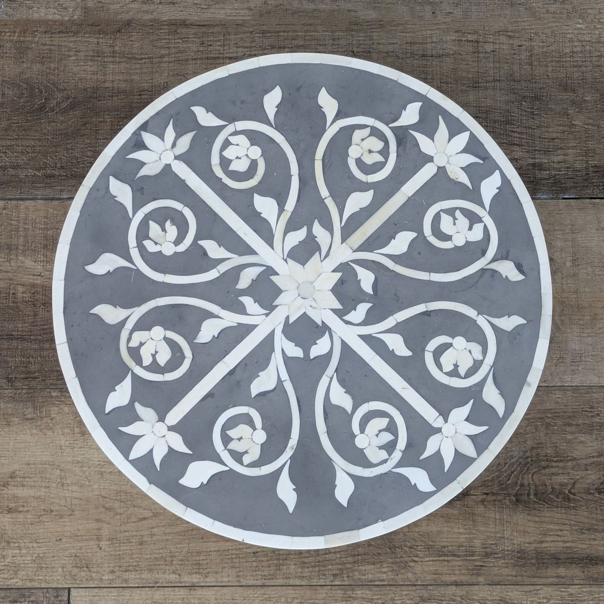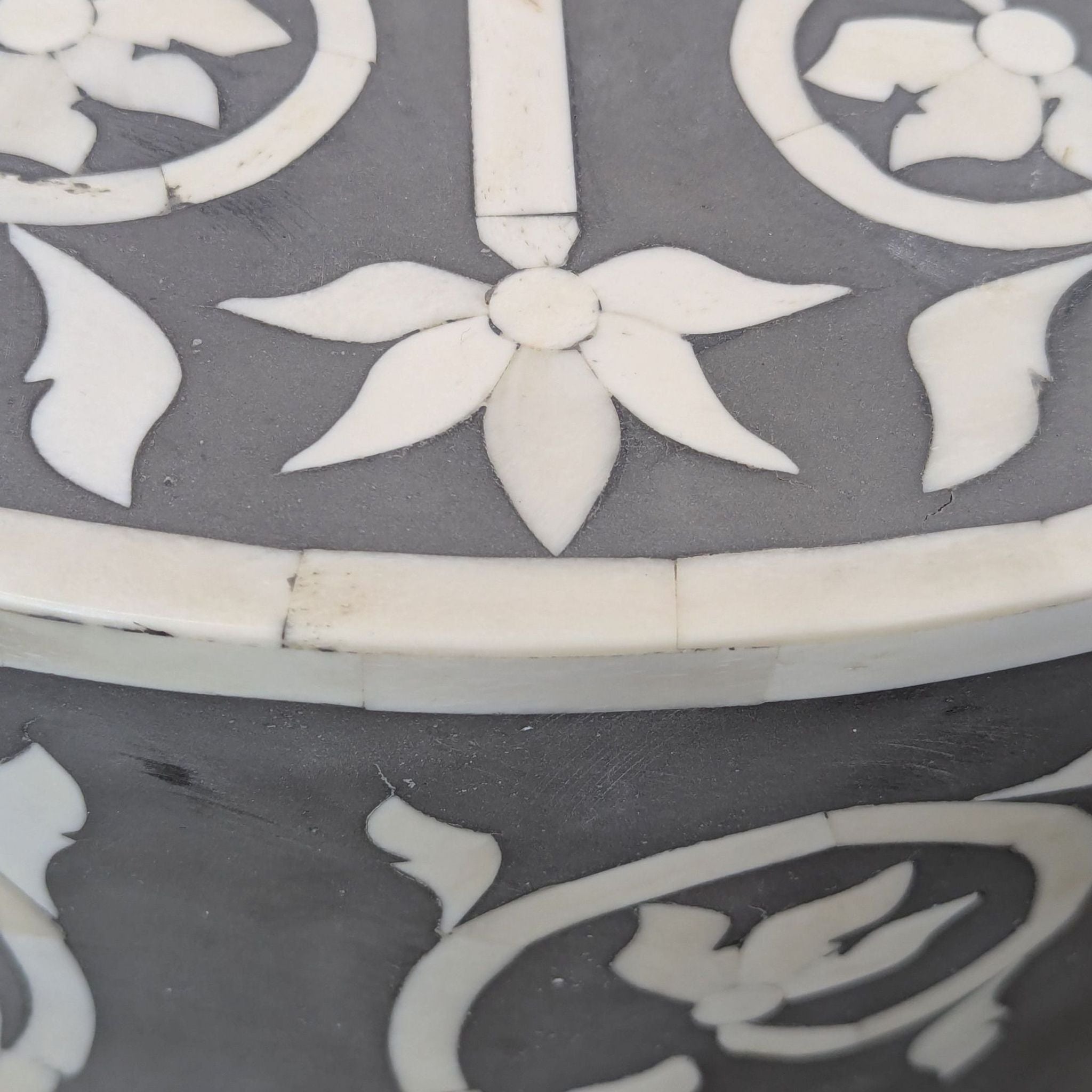 Bone Inlay Drum Accent Table