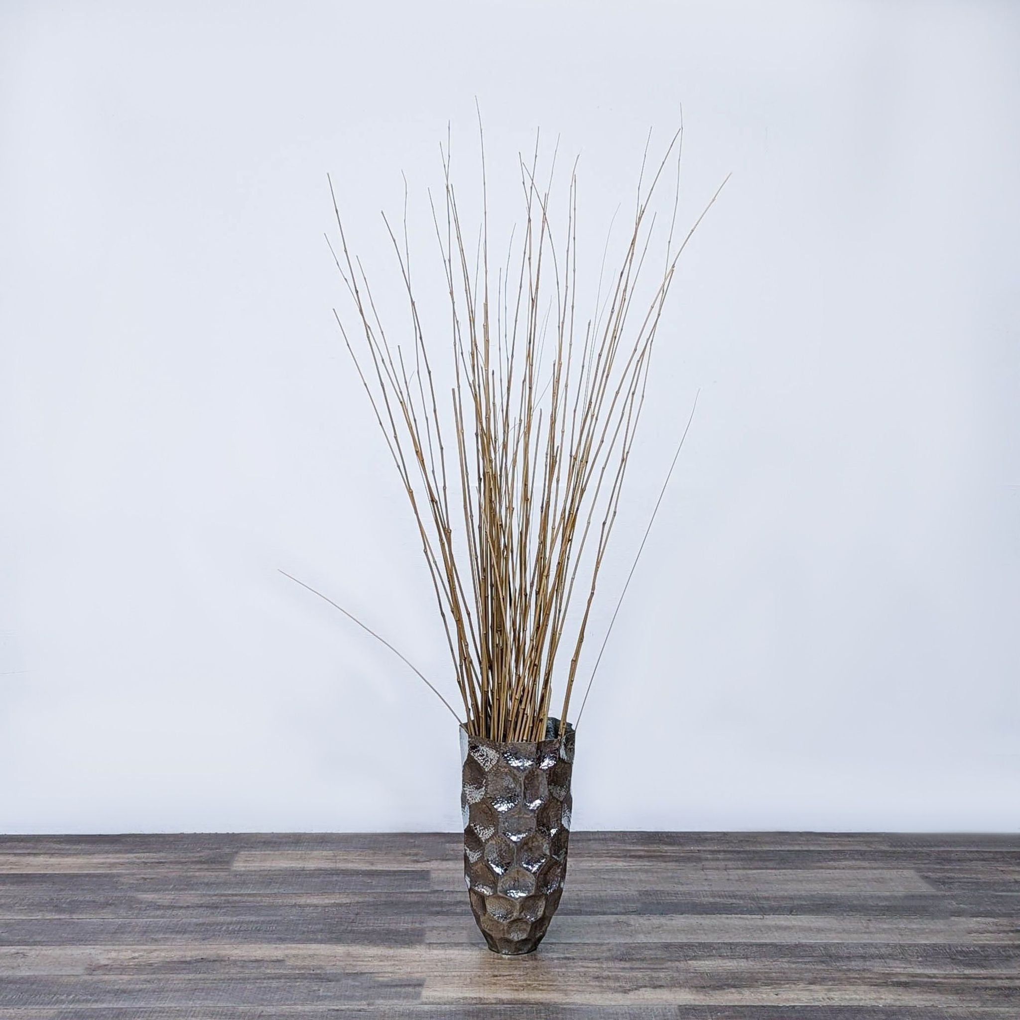 Hammered Metal Floor Vase with Bamboo - Reperch