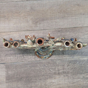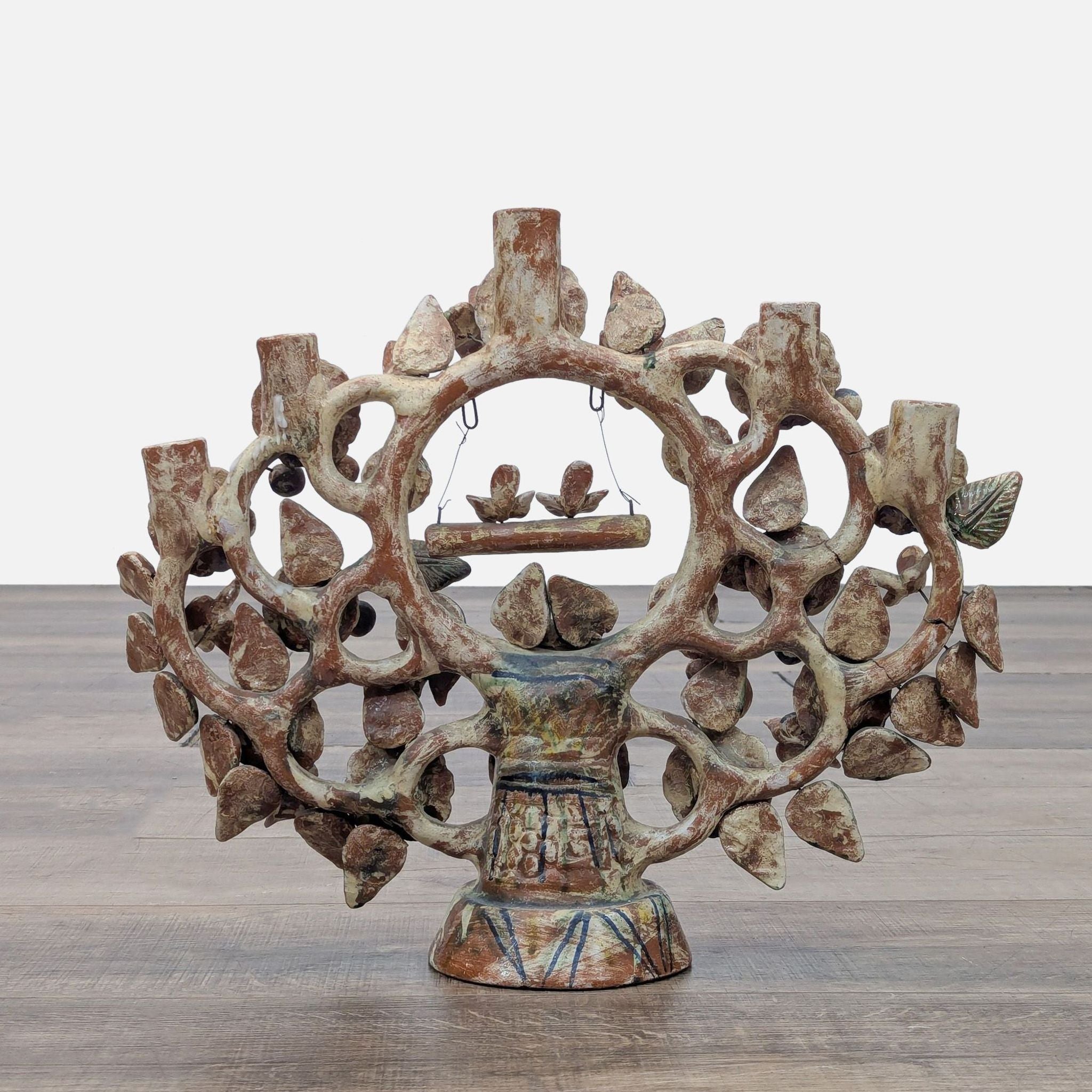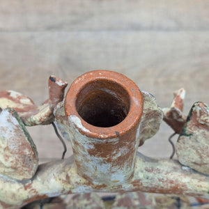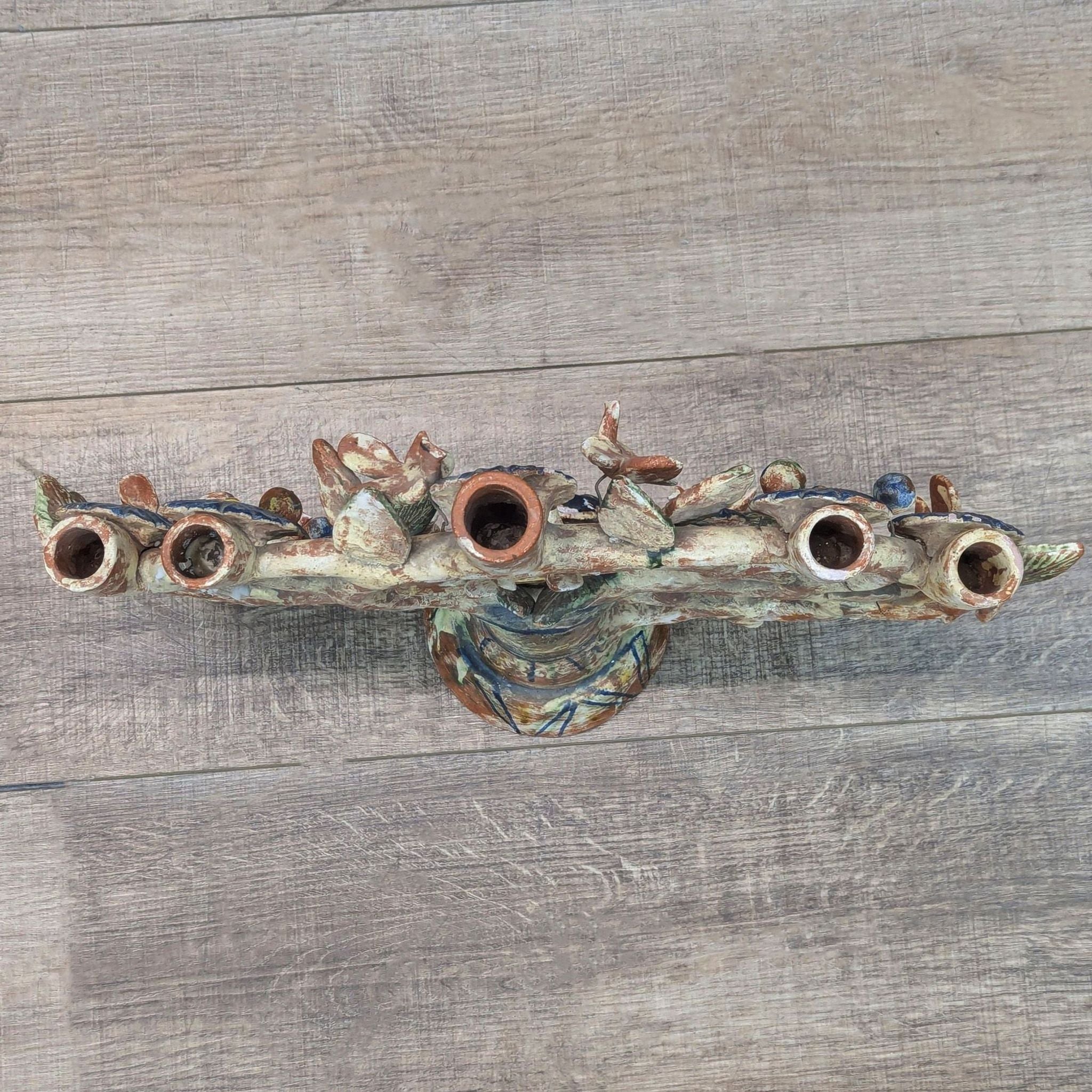 Mexican folk art with glazed birds and flowers and 5 candle holders
