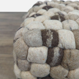 Taupe, charcoal and gray shag checkerboard wool square pouf ottoman