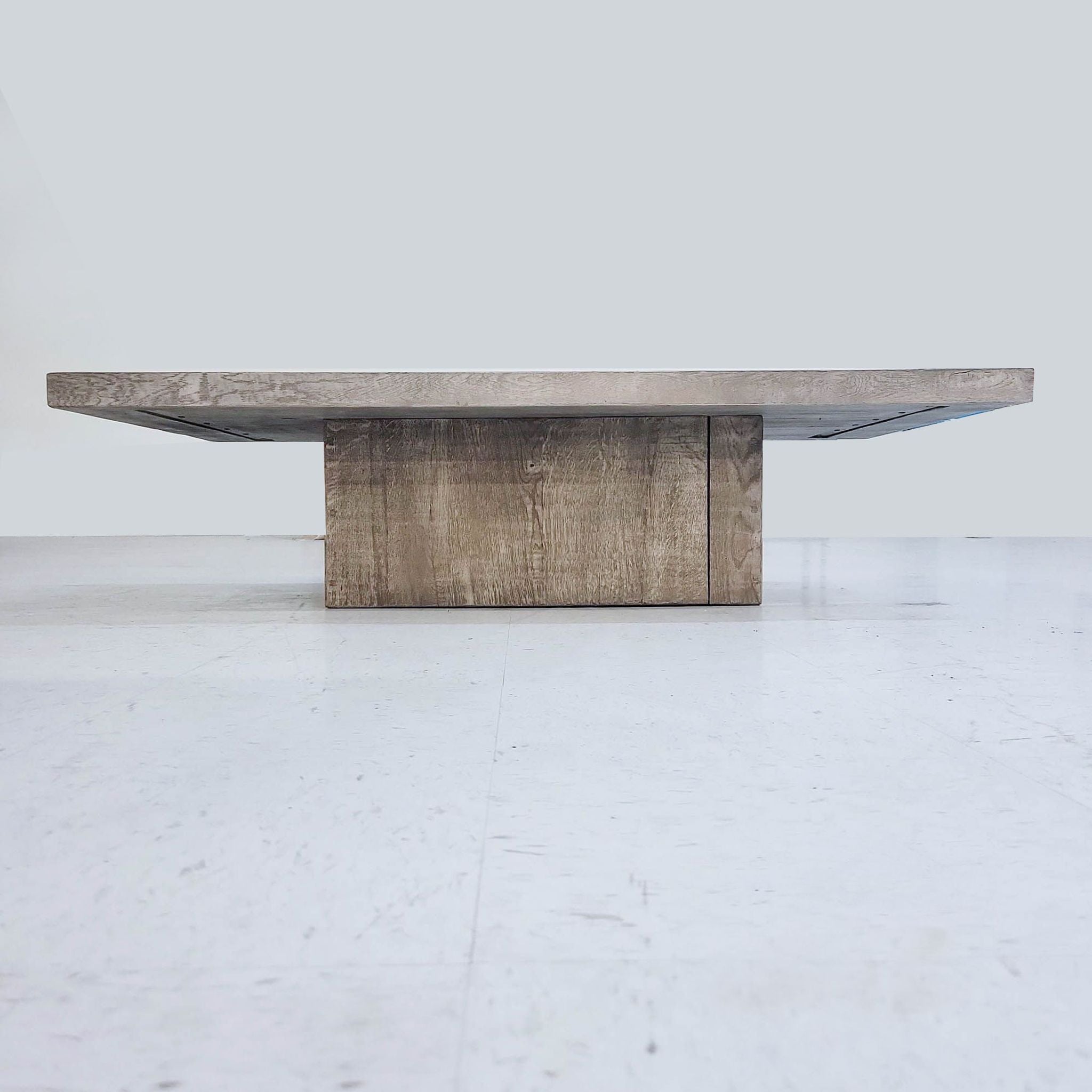 Reclaimed oak timbers from decades-old buildings, with distressed white oak planks for consistency and stability are from artisan Theo Eichholtz. Each piece is handcrafted of wood that retains its natural character.
