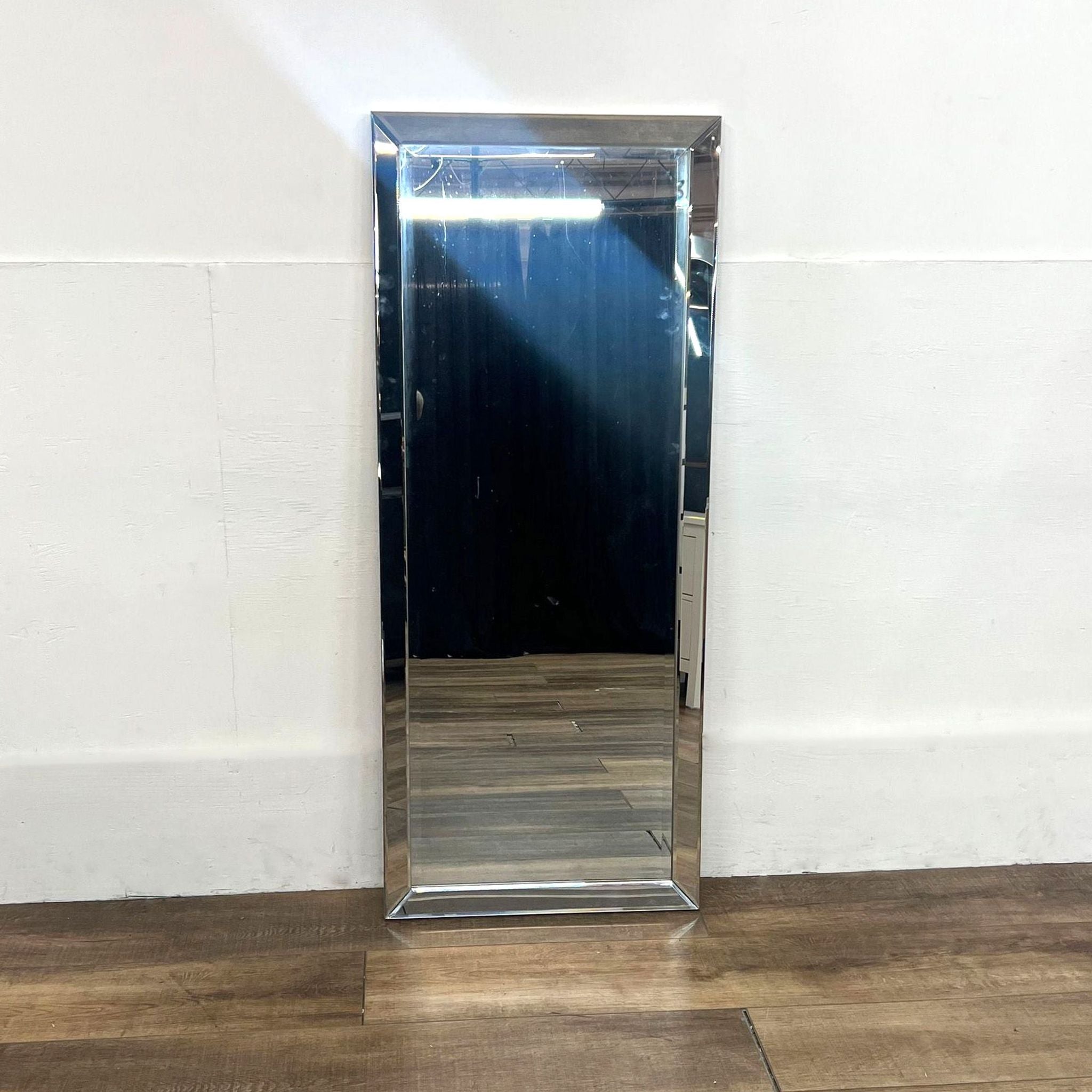 This full length mirror has a beveled mirror frame and can be leaned against the wall or mounted with the attached D-Rings.