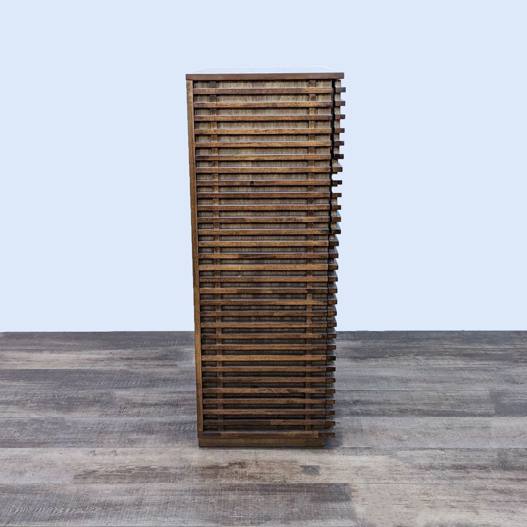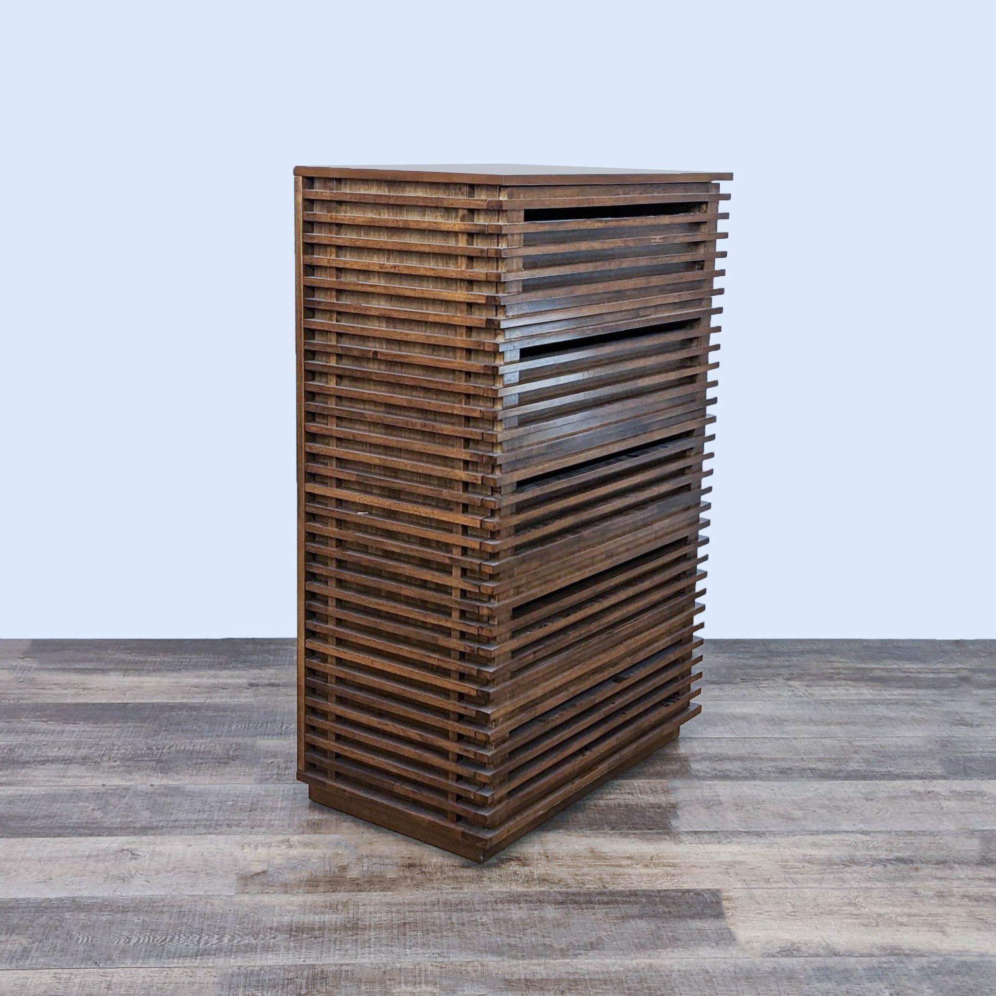 The Linea High Chest by Zuo Modern is inspired by Scandinavian modern design with a slatted design on the front and sides. Each of the five-drawers have a wide space allowing for easy access with no hardware.