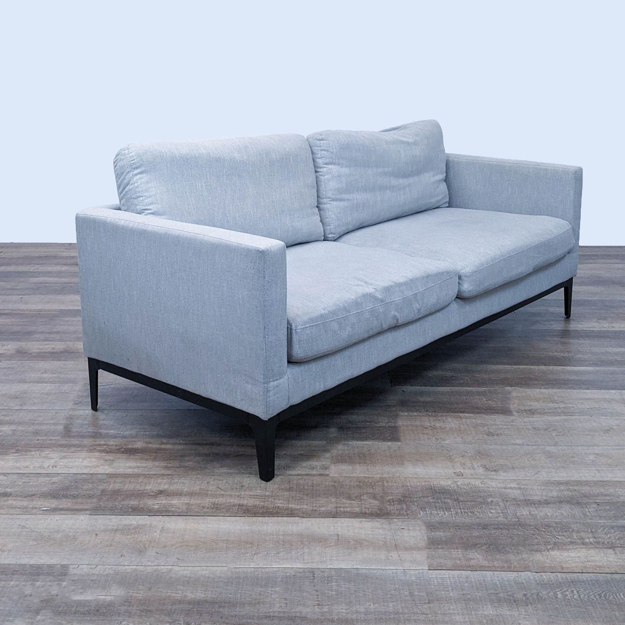 Clean Line Gray Sofa With Narrow Arms And Metal Frame Feet