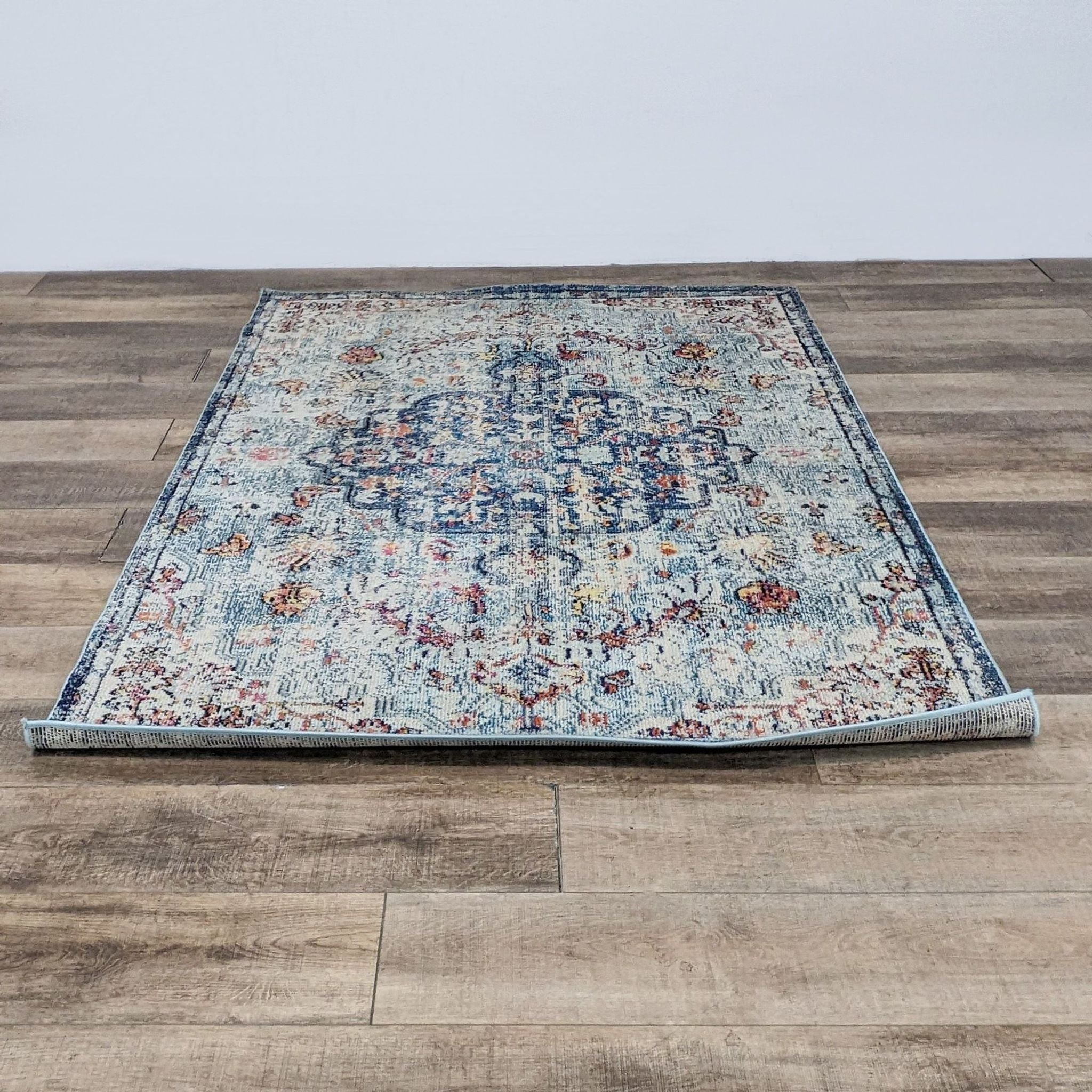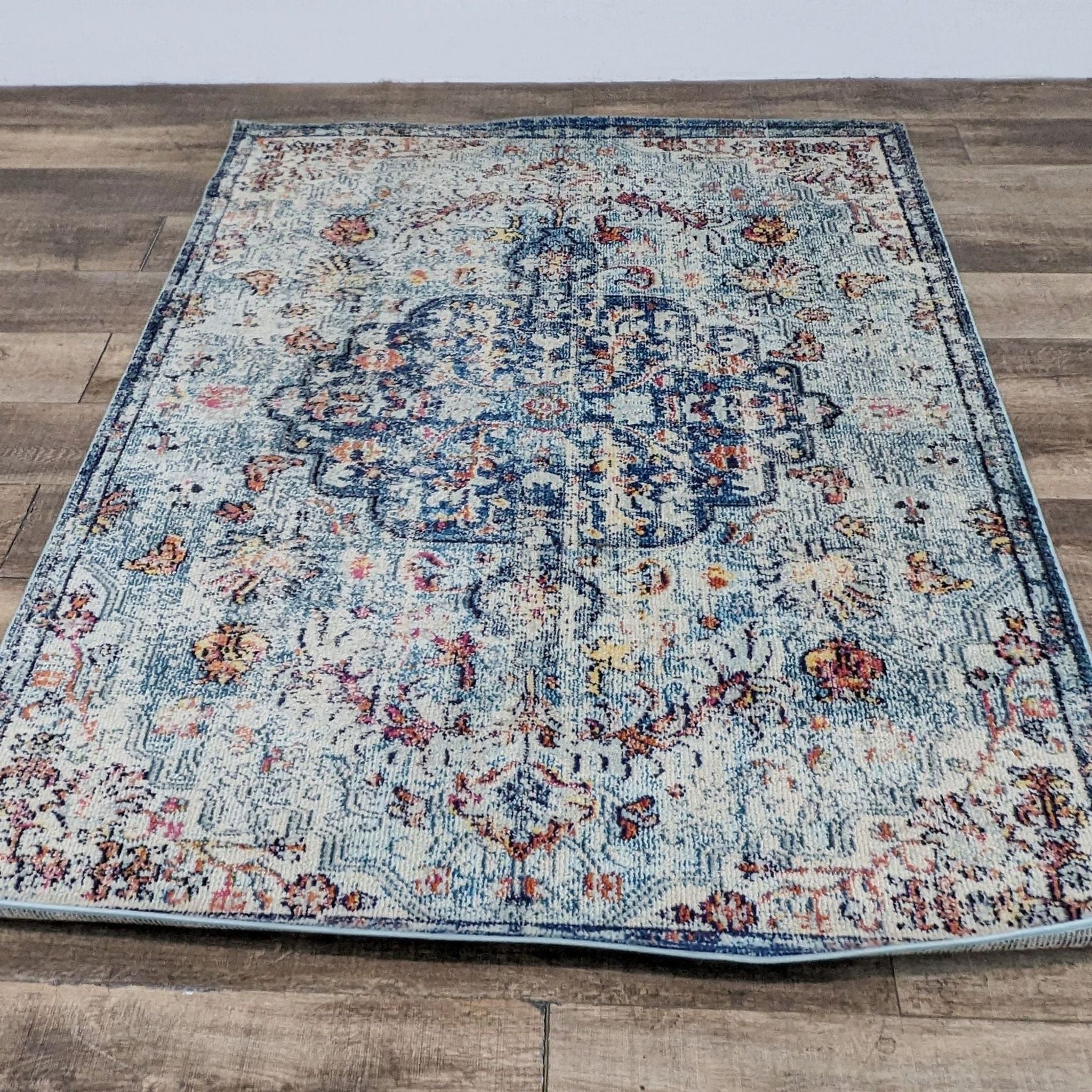 The Safavieh Madison rug is machine woven in Turkey and features a distressed boho style with a center medallion.